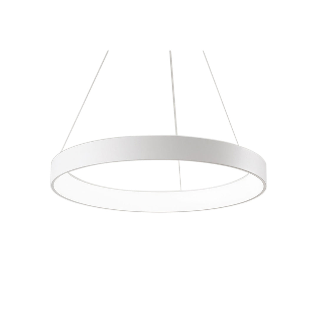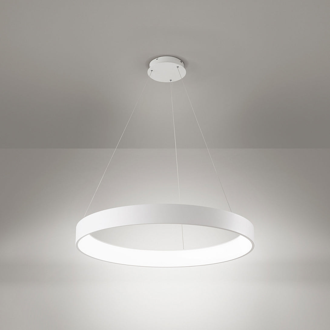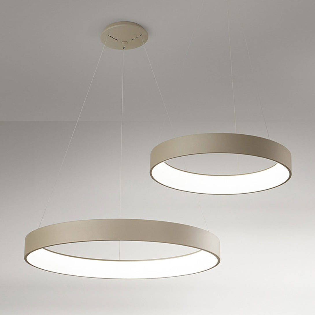 A lamp with a minimal and functional design that uses a ring structure to diffuse natural light throughout the surrounding space. The lamp allows you to adjust the length of the cables as desired, while also guaranteeing the high quality typical of Made in Italy .