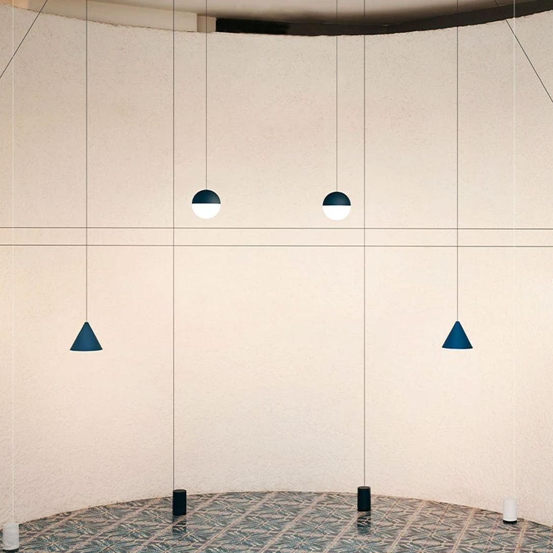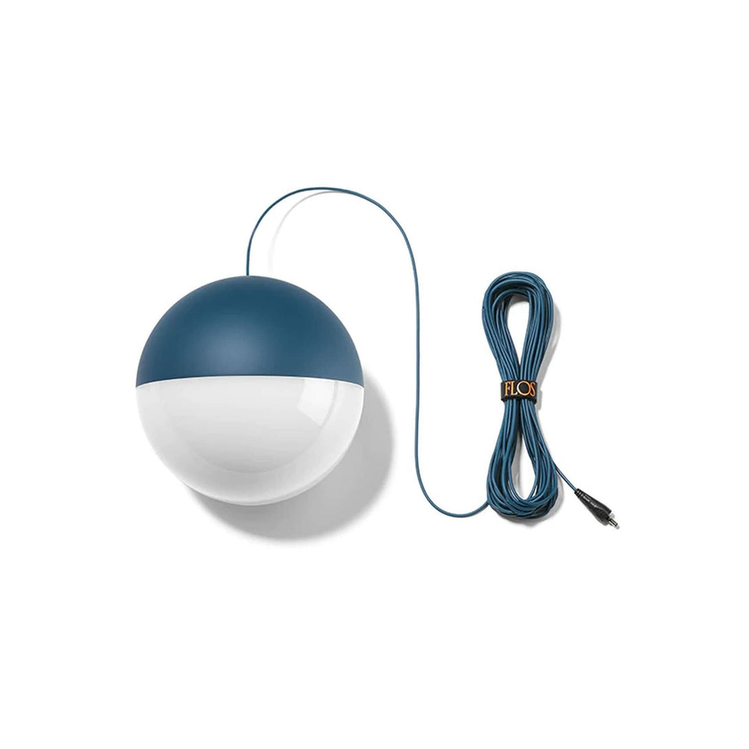 Flos presents the String Light suspension lamp in two shapes, sphere and cone , while the 12 or 22 meter suspension system is made with Kevlar -reinforced coaxial cable available with wall/ceiling connection in matt black , white or blue polycarbonate.