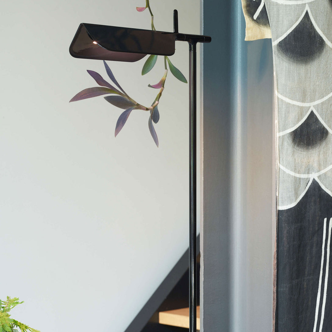 The Tab family of lamps by Flos , designed by Edward Barber & Jay Osgerby , embodies the perfect combination of formal elegance and luminous functionality. Available in table and floor lamp versions, Tab stands out for its modern and essential design: a clean silhouette, made of simple lines and refined details, ideal for contemporary spaces. The painted aluminum body and the thin adjustable head create a discreet yet distinctive light source, available in refined black , white , dark green and matt blue finishes.
