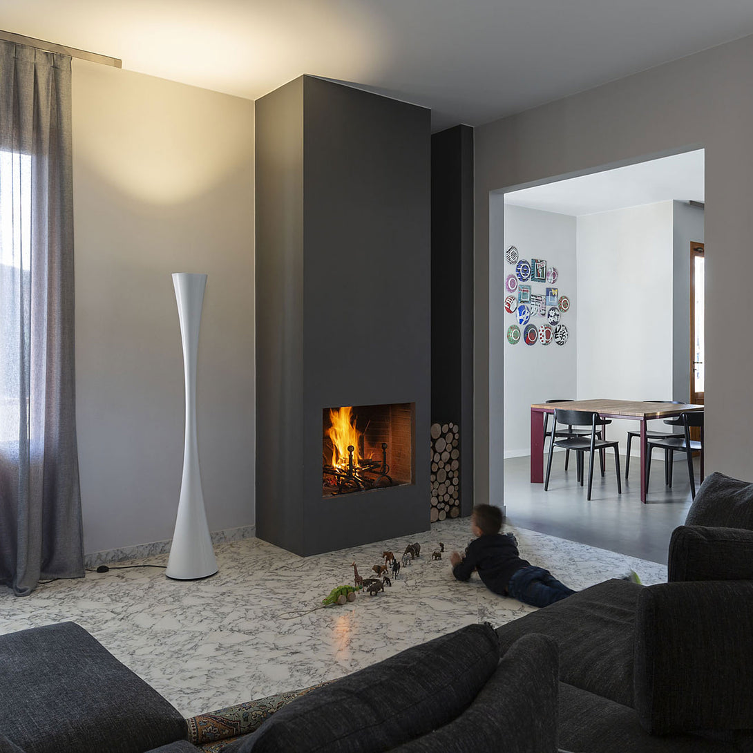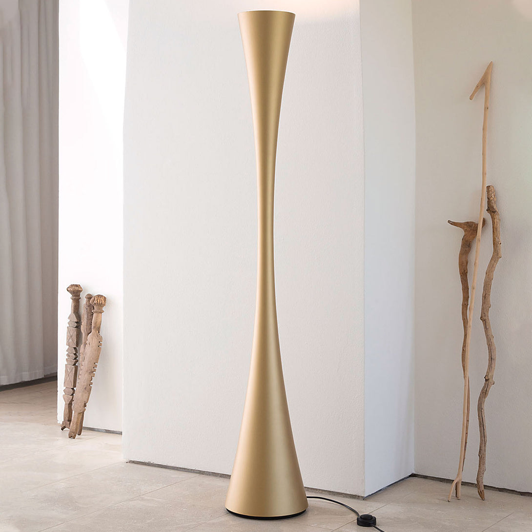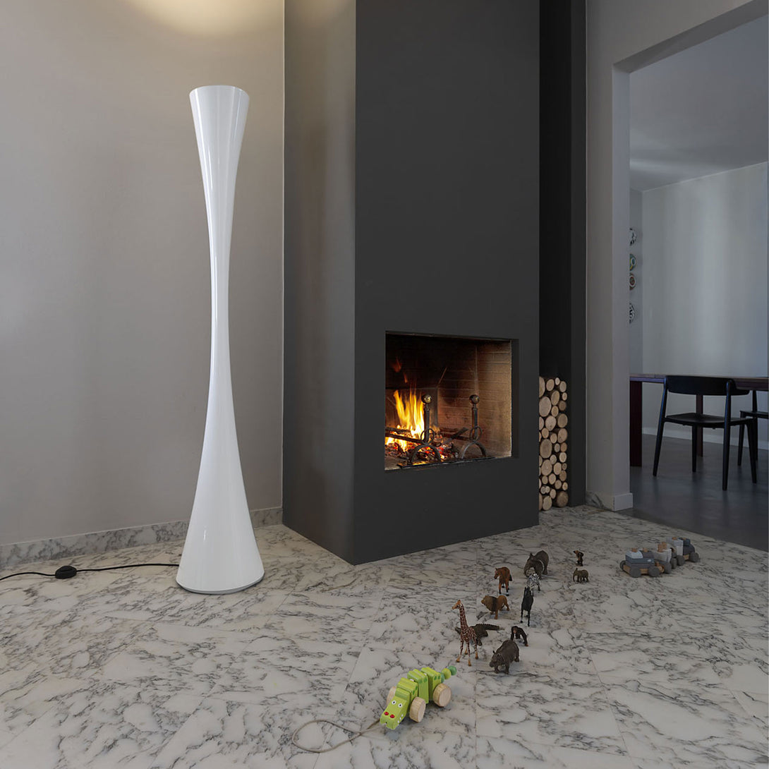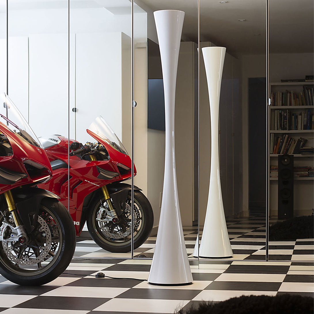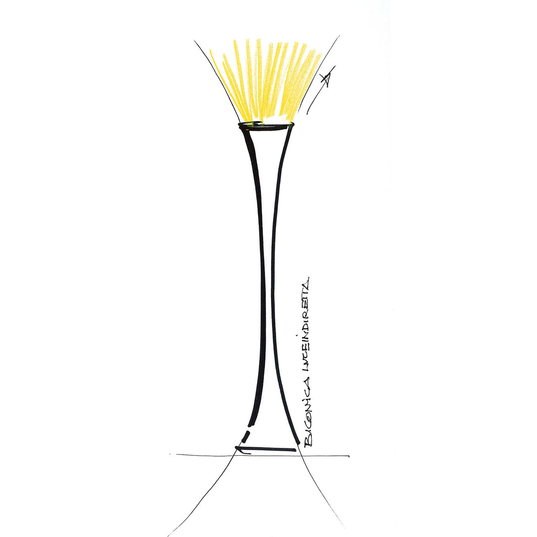 Biconica is a collection of floor lamps created by Elio Martinelli and Emiliana Martinelli in 1987 for Martinelli Luce , conceived as a luminous sculpture. Its shape arises from the intersection of almost tangent circles, generating a void that becomes the distinctive element and aesthetic signature of the design.