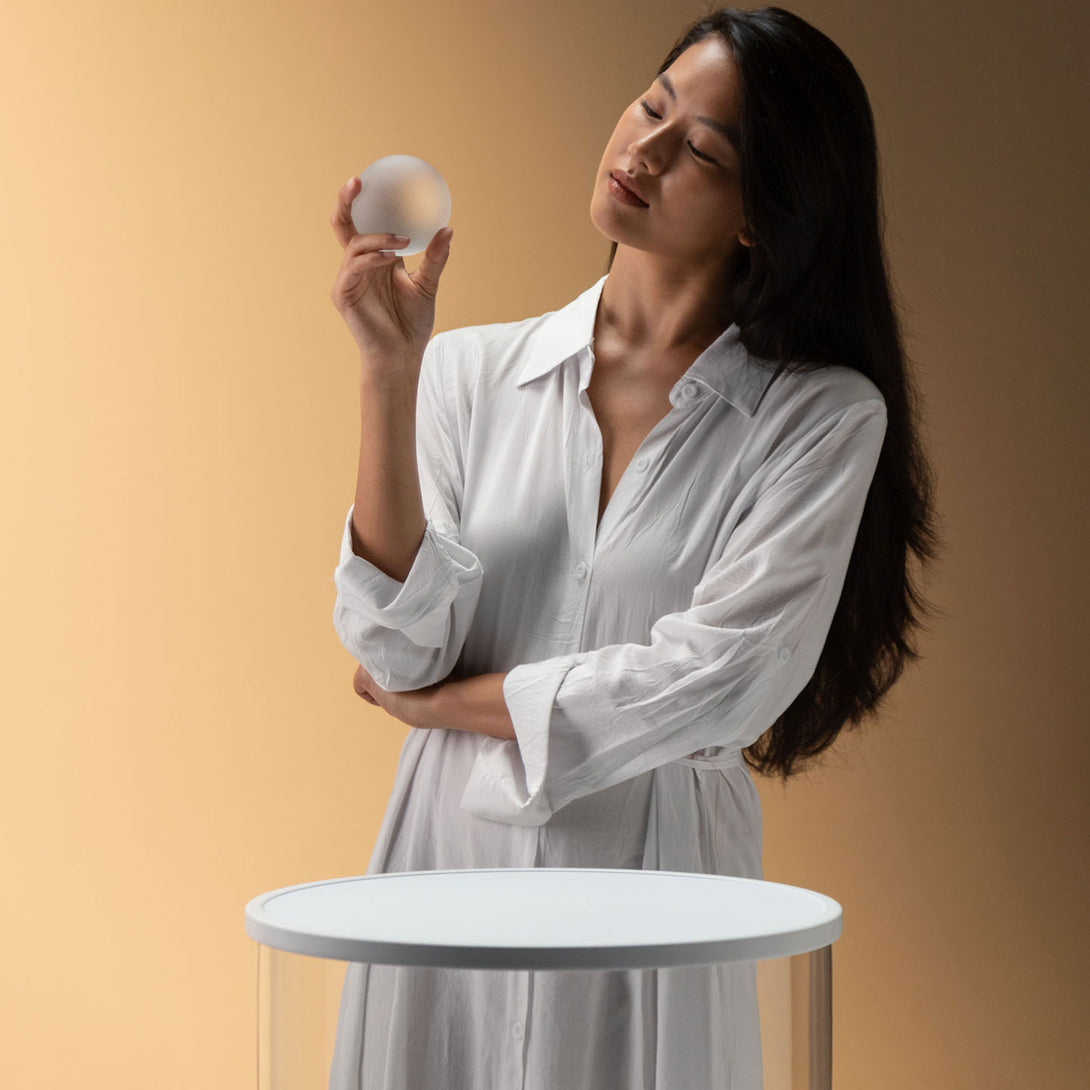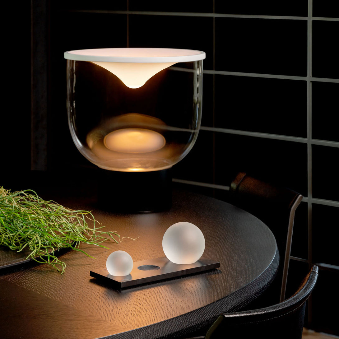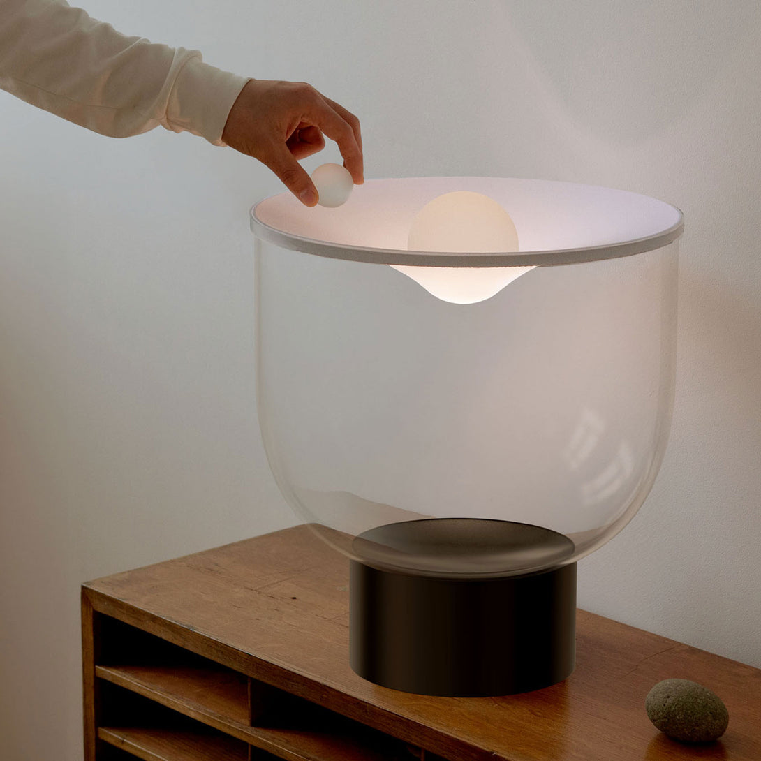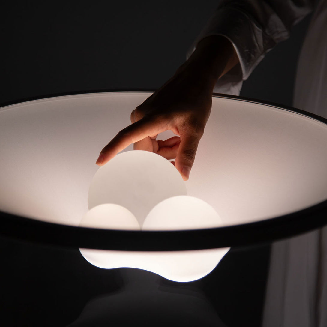 Thanks to this technology, the dynamic white LED source offers lighting that gradually changes from softer and warmer with lighter weights to stronger and colder with the addition of additional spheres. Grammoluce lamps thus become interactive and surprising objects, where the simple act of placing a sphere translates into a unique lighting experience.