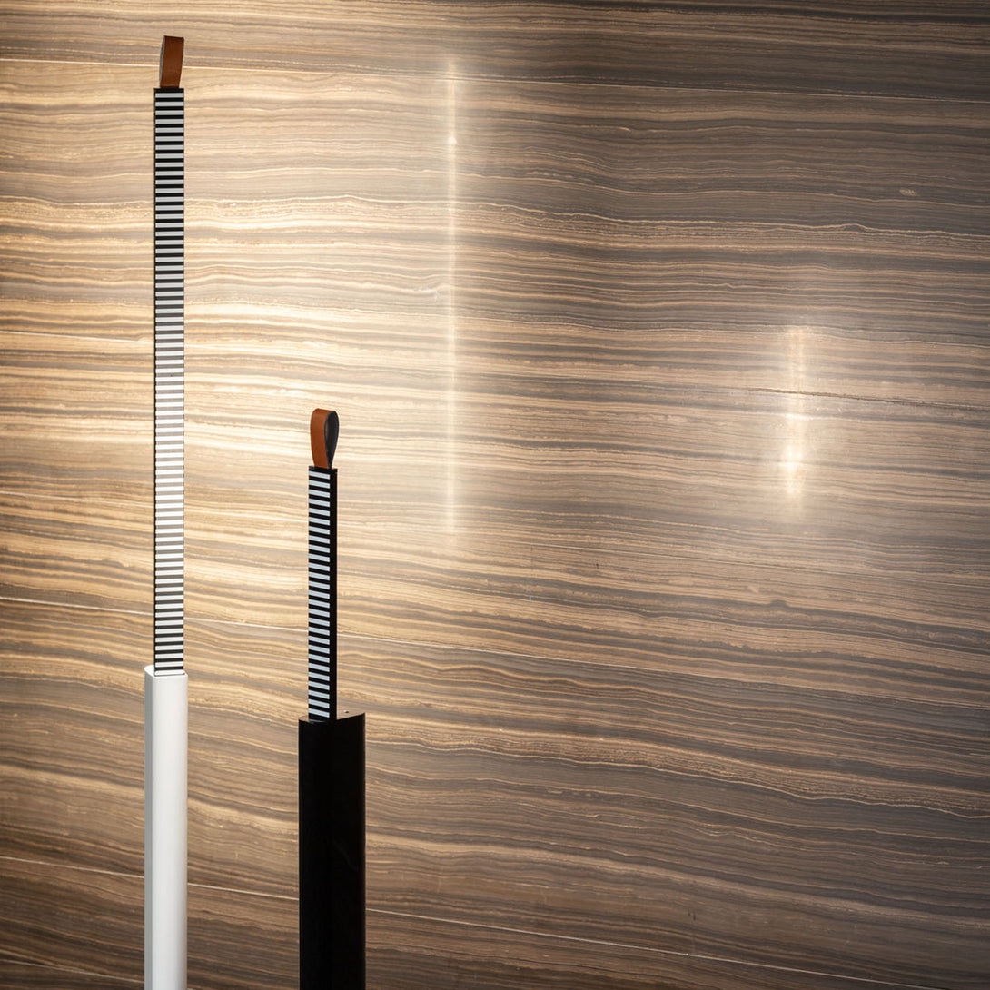 Metrica is a family of lamps designed by Habits Design for Martinelli Luce. Interactive and technological, its concept is inspired by the gesture of a measuring tape: the LED source is hidden inside the lamp body and can be removed or repositioned , gradually modulating the light intensity and transforming the light into a dynamic and precise element.