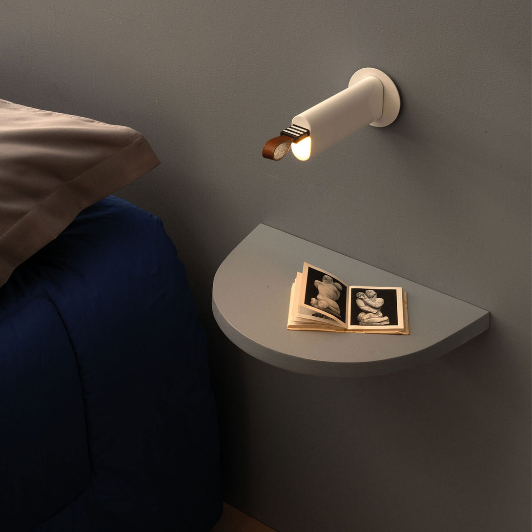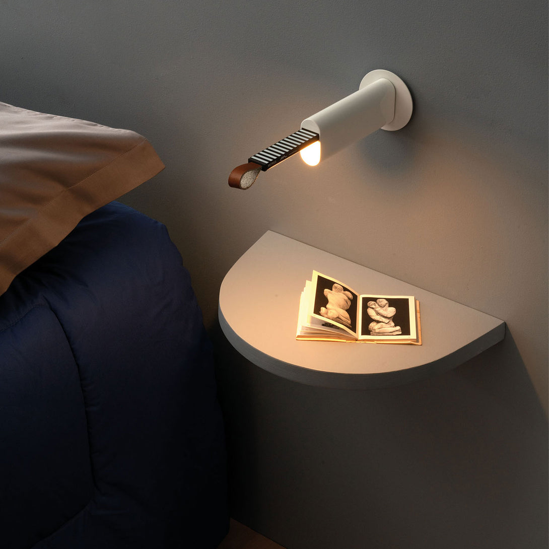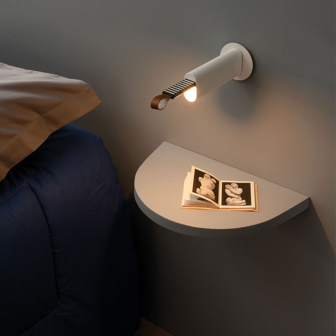 The Metrica wall lamp version features a 15.6 cm long, glossy body that appears to emerge from the wall in an elegant and essential manner. The 9.5 cm long LED light source can be extracted from the circular base that rotates 360° , allowing you to direct the light according to your personal needs.