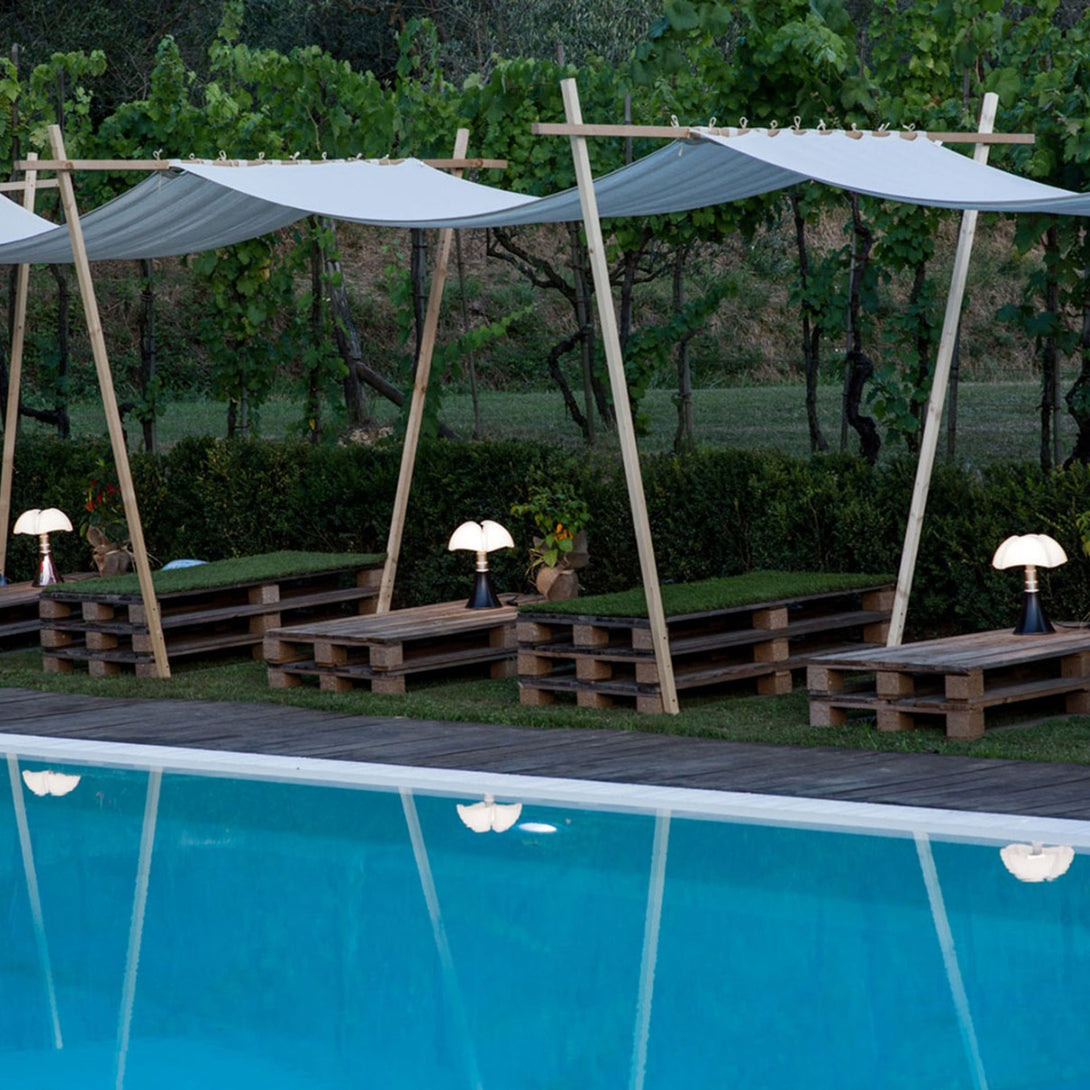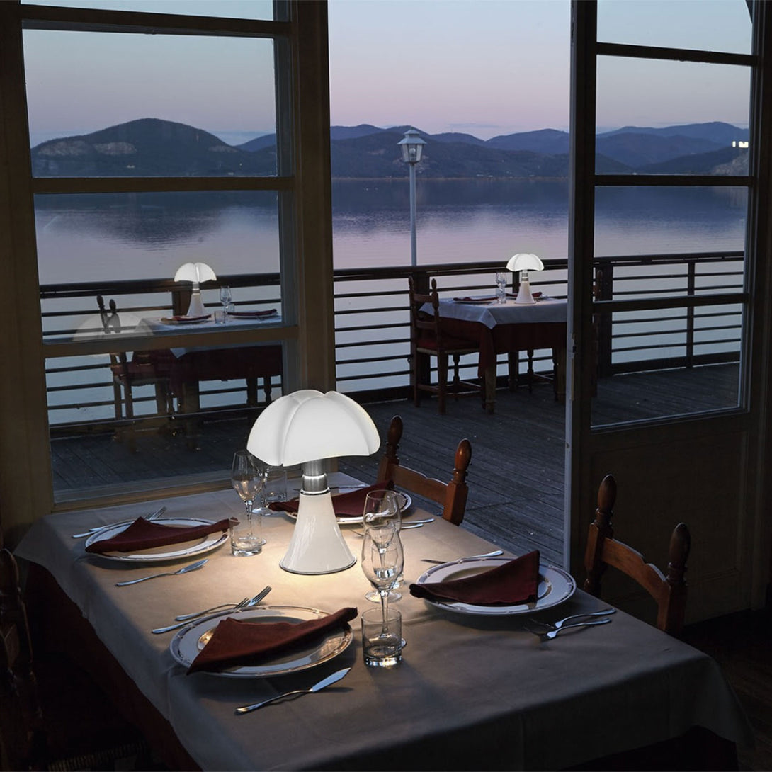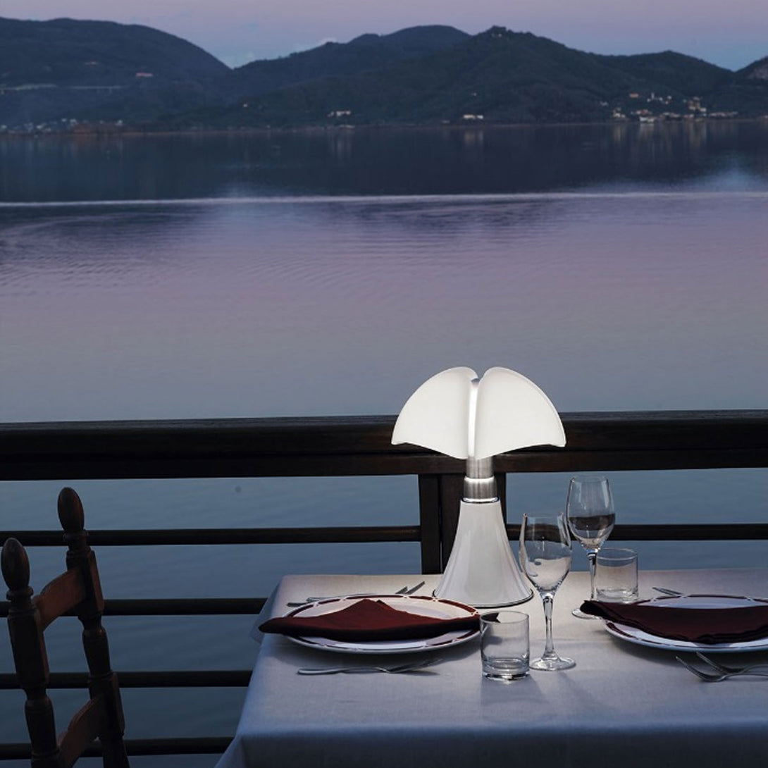 Pipistrello is a collection of table lamps designed by Gae Aulenti for Martinelli Luce. This version is the Minipipistrello Cordless.