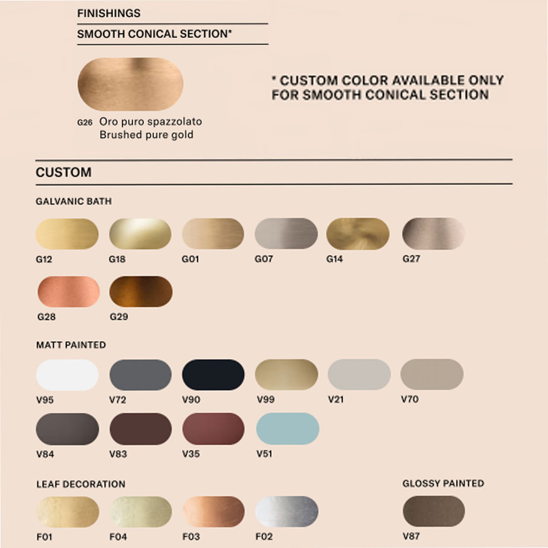 2700°K VERSIONS AND FURTHER FINISHES ARE AVAILABLE ON REQUEST (see palette).