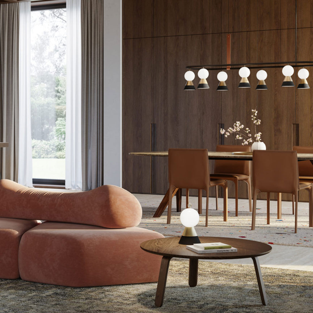 BŌZU is a family of lamps designed by Masiero , characterized by essential geometric lines that combine in harmonious forms. The name recalls the image of a silent monk, a symbol of balance and sobriety , which is reflected in the timeless elegance of the project.