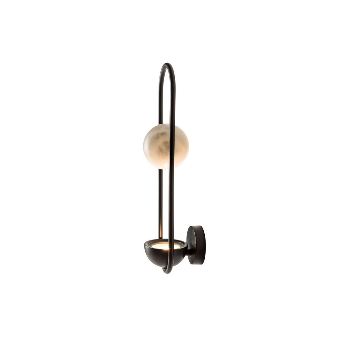 The Luppiter lamp is made with a painted metal frame and lampshade. Some of the lamps in the family include a sphere available in metal or alabaster , which diffuses the LED light softly and warmly . The contrast between matte and shiny surfaces gives the project a contemporary yet discreet character.