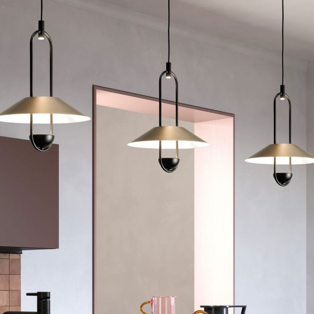 The Luppiter lamp is made with a painted metal frame and lampshade. Some of the lamps in the family include a sphere available in metal or alabaster , which diffuses the LED light softly and warmly . The contrast between matte and shiny surfaces gives the project a contemporary yet discreet character.