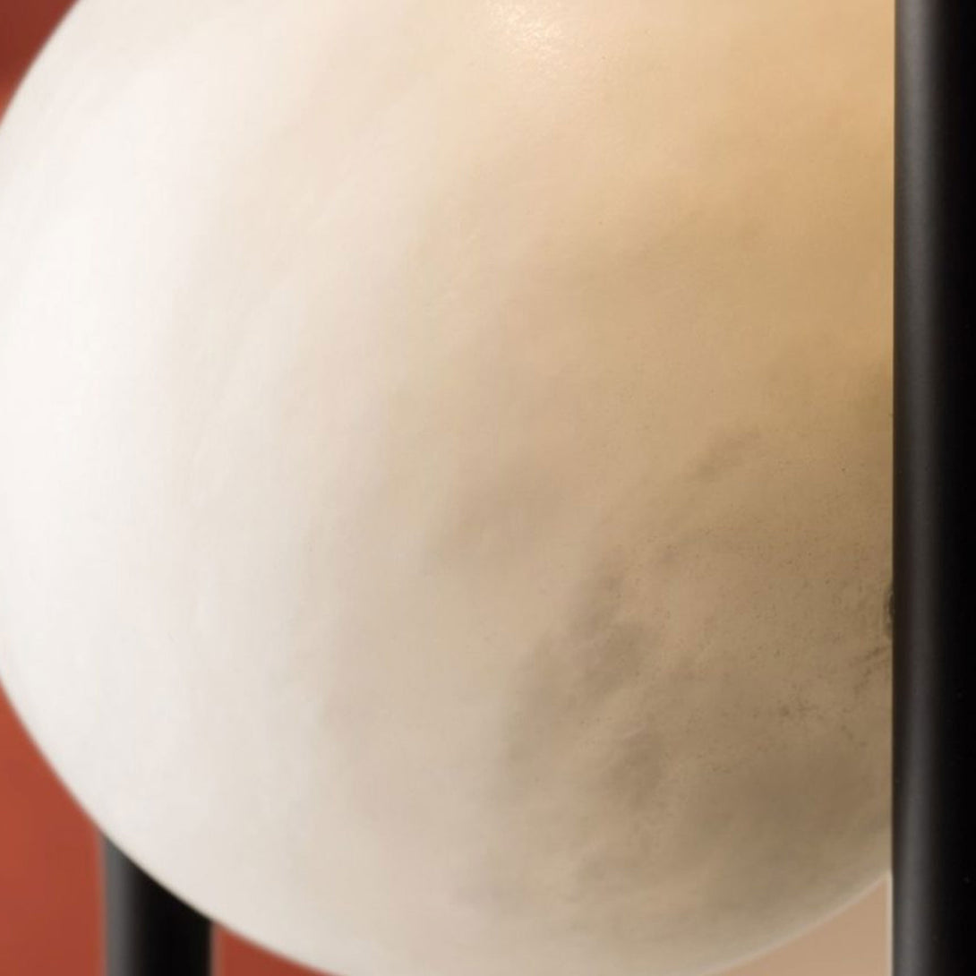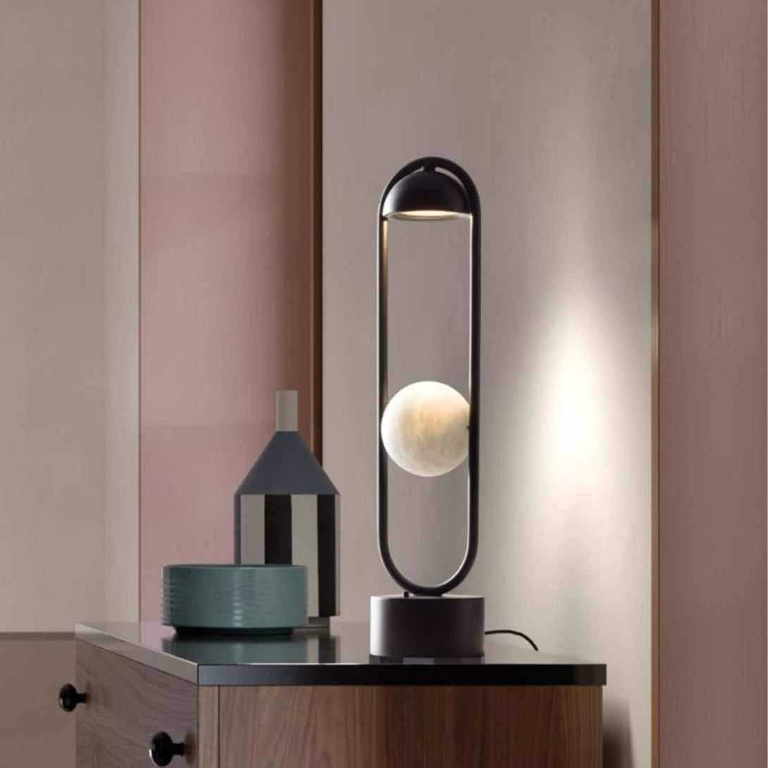 The Luppiter lamp is made with a painted metal frame and lampshade. Some of the lamps in the family include a sphere available in metal or alabaster , which diffuses the LED light softly and warmly . The contrast between matte and shiny surfaces gives the project a contemporary yet discreet character.