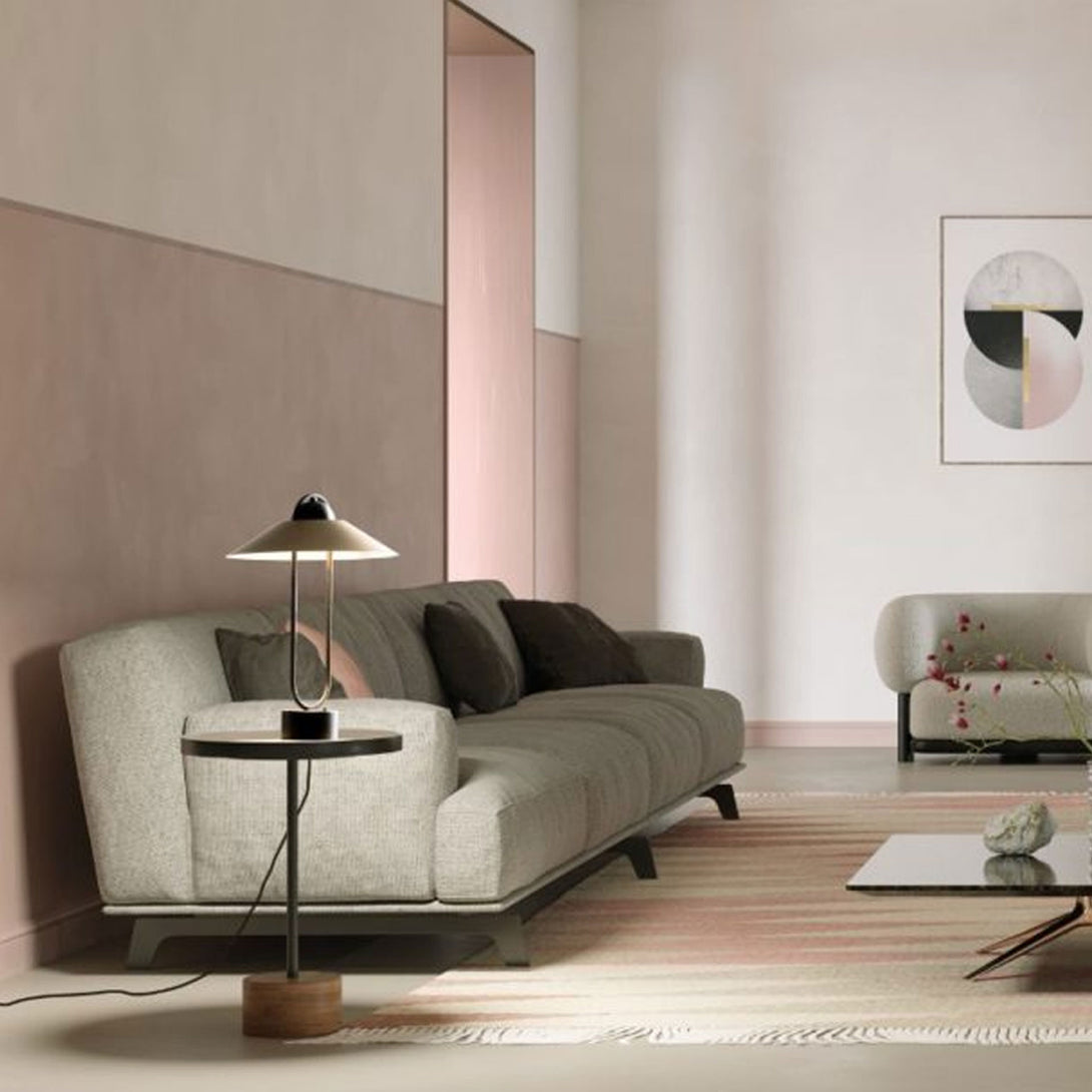 The Luppiter lamp is made with a painted metal frame and lampshade. Some of the lamps in the family include a sphere available in metal or alabaster , which diffuses the LED light softly and warmly . The contrast between matte and shiny surfaces gives the project a contemporary yet discreet character.
