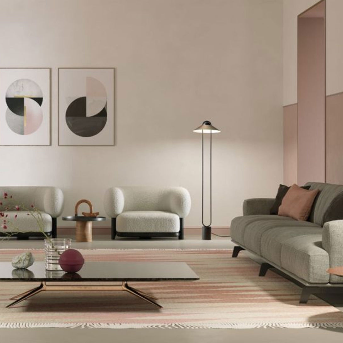 The Luppiter lamp is made with a painted metal frame and lampshade. Some of the lamps in the family include a sphere available in metal or alabaster , which diffuses the LED light softly and warmly . The contrast between matte and shiny surfaces gives the project a contemporary yet discreet character.