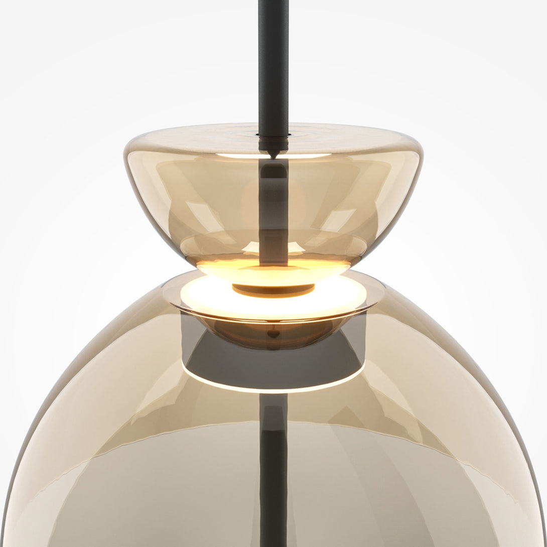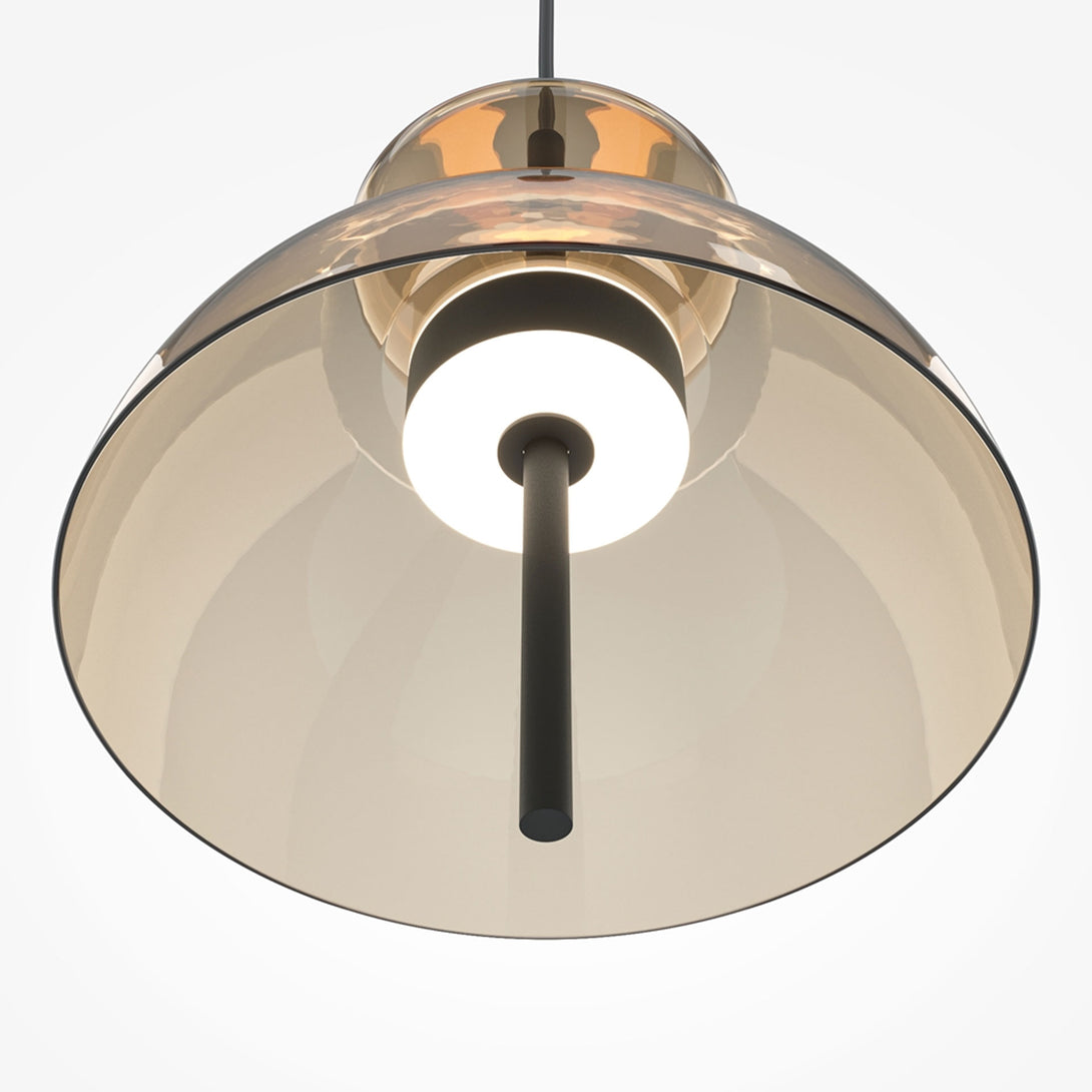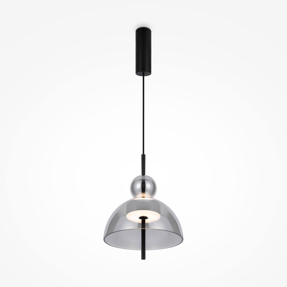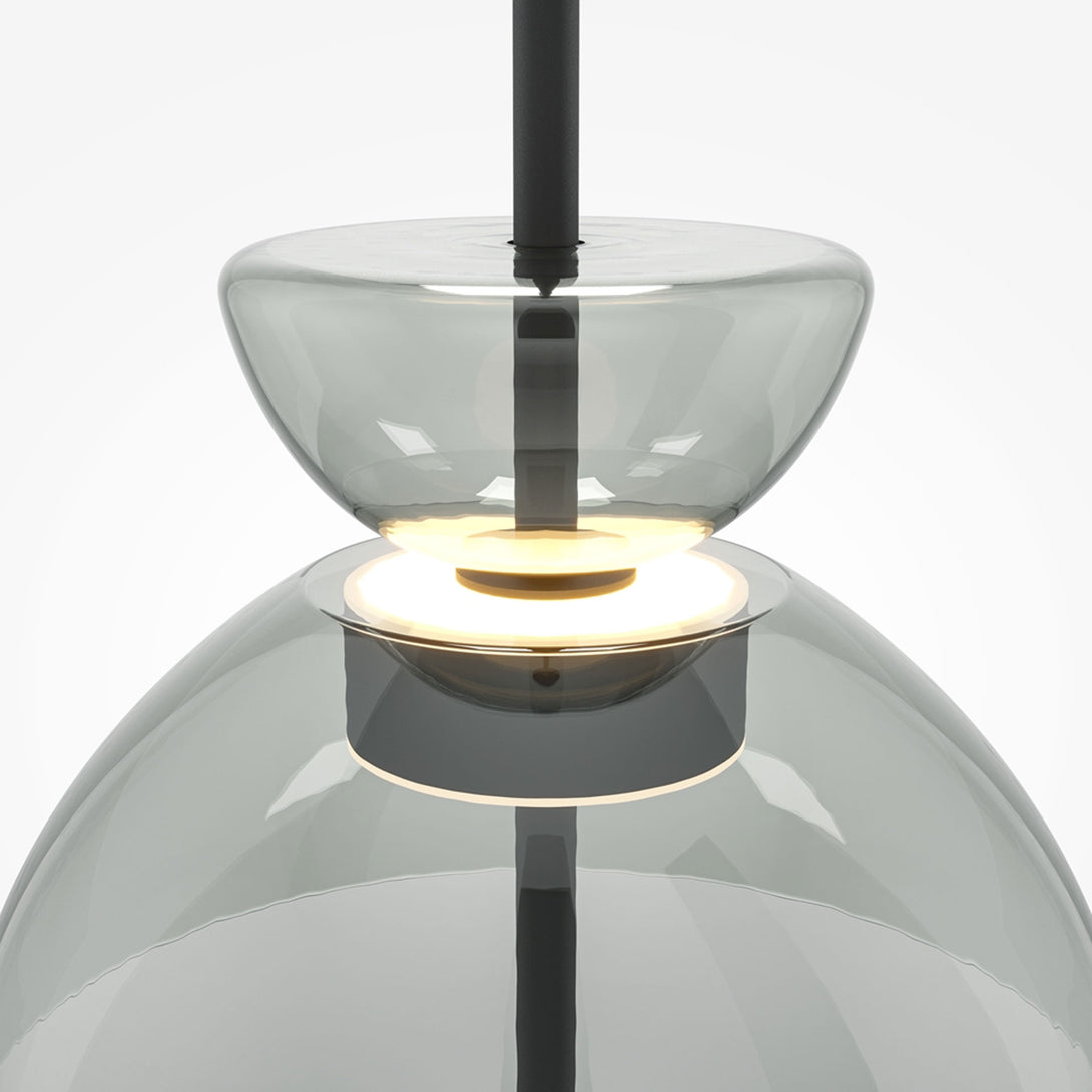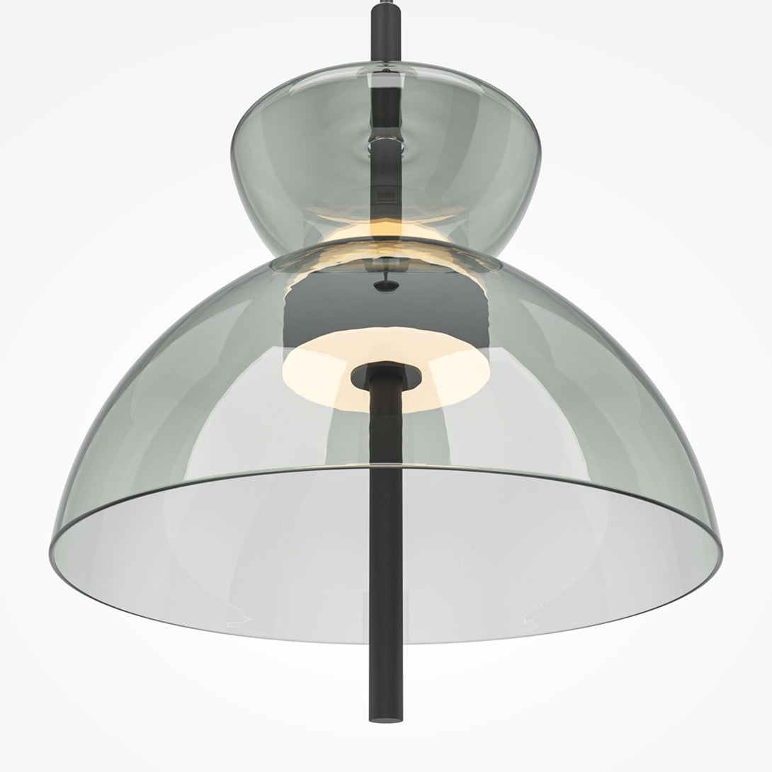 Bangkok is the collection of pendant lamps by Maytoni , perfect for those who want to bring elegance and design to modern environments. Inspired by the architecture of Thai temples, this line combines tradition and modernity in a sculptural and harmonious form. The glass shade is available in three refined colors — smoked, transparent and gray — and is combined with a black metal structure that enhances its minimalist and contemporary style.