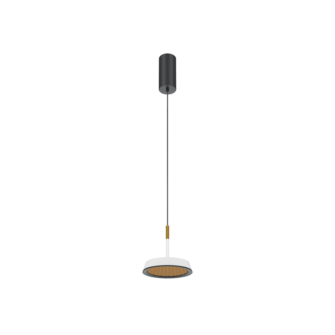 El is the collection of dimmable LED pendant lamps by Maytoni , inspired by the suprematist aesthetics of El Lissitzkij . With a lightweight yet durable aluminum body, available in elegant black , white , brass and terracotta finishes combined with a gold element, the El lamp represents a perfect balance between pure geometric form and contemporary functionality. The warm and comfortable 3000°K light transforms any environment into an intimate and refined space.