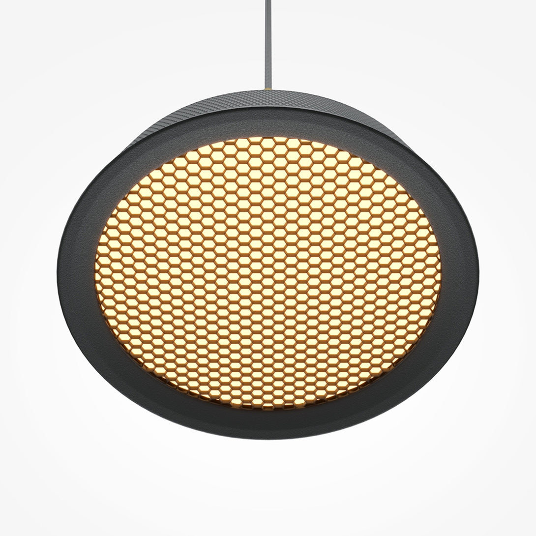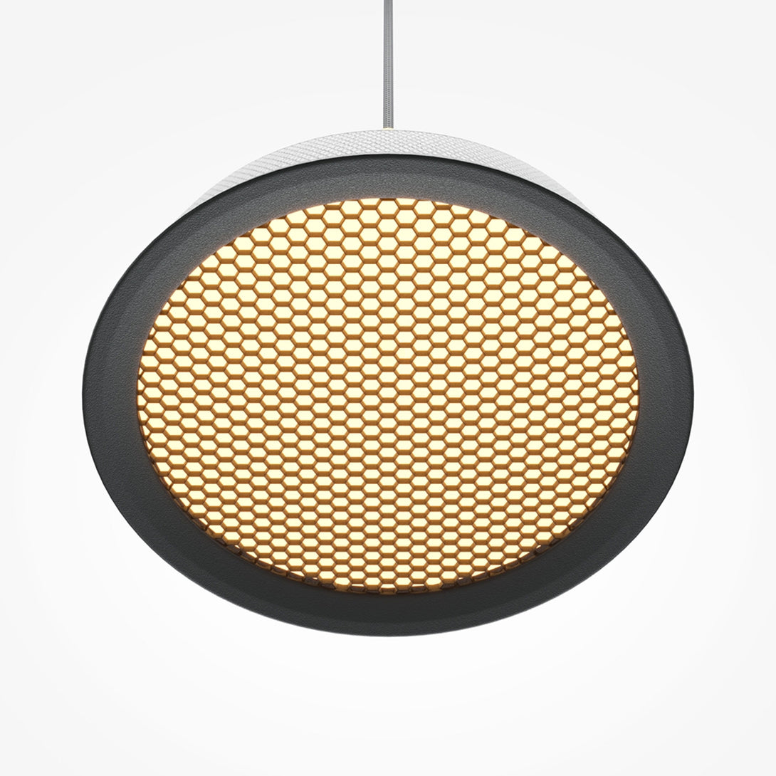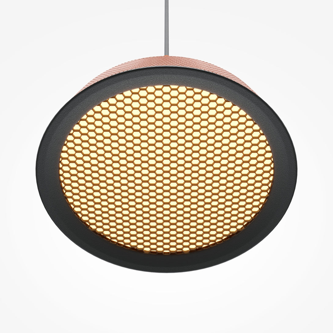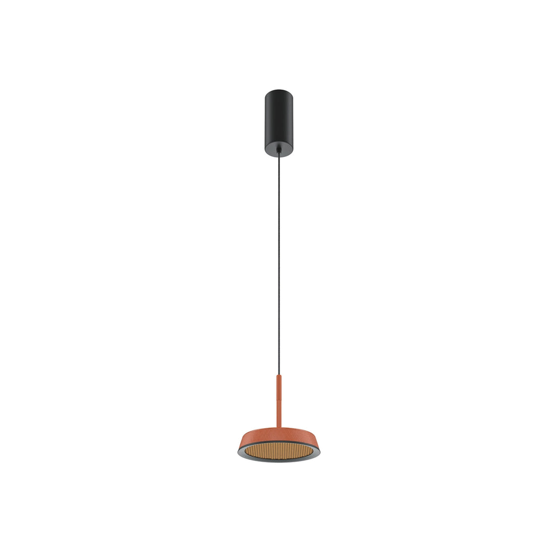 The El pendant lamp collection stands out for its innovatively designed lampshades : one version with a raised graphic surface, and another that combines the tablet with a smooth metal plate, for a double visual expressiveness. Thanks to the integrated LED module , El emits a light directed downwards, ideal for lighting kitchens, living rooms, offices or contract environments with style. The CRI 80Ra colour rendering index ensures natural and vivid colours, enhancing every detail of the furniture.