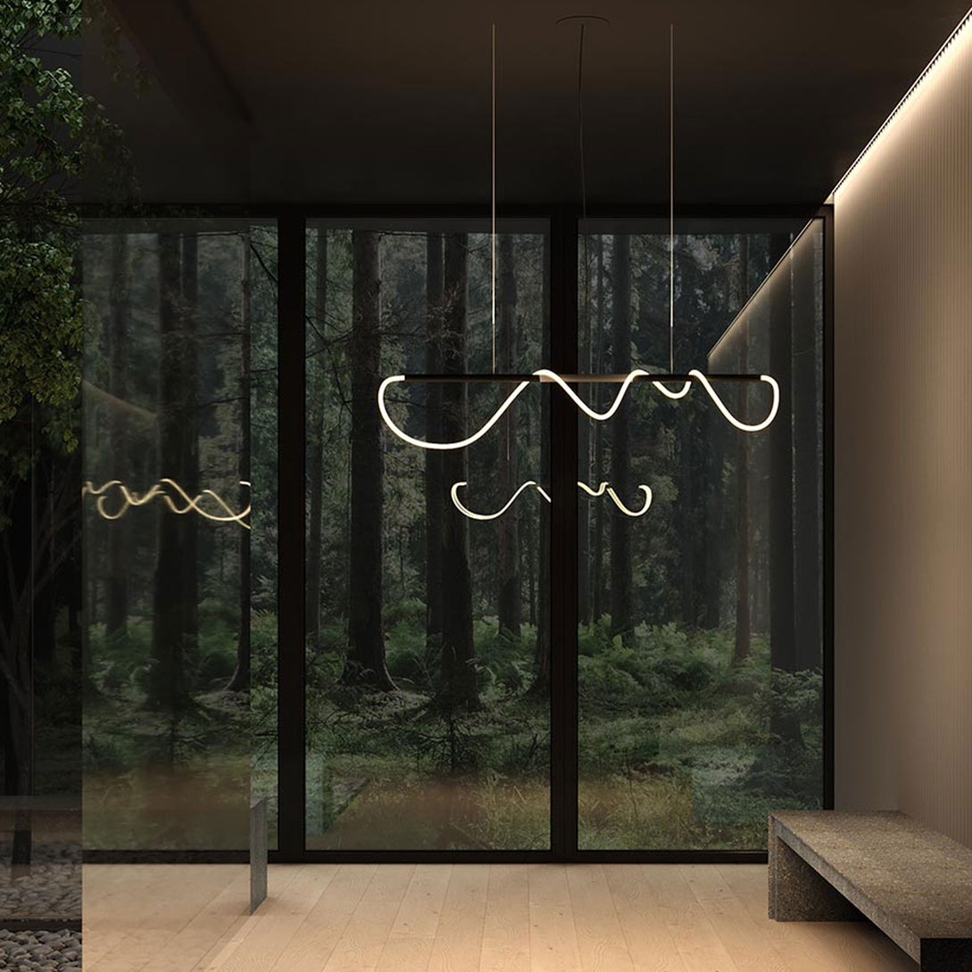 The Tau lamp collection by Maytoni , whose name means "rope" in German, represents one of the most innovative trends in contemporary lighting: the use of flexible neon as a diffuser. Thanks to the minimalist and high-tech design, available in black and brass finishes, Tau lamps integrate perfectly into modern, essential and elegant environments. The warm and diffused light enhances every space with a sophisticated and welcoming atmosphere.