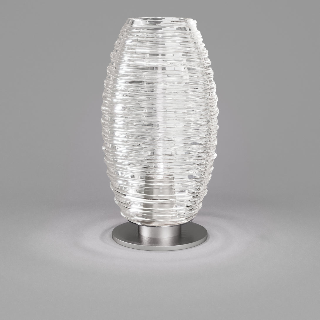 Romantic and original, the Damasco lamps are characterized by the particular cocoon manufacturing technique which, through the overlapping of fused glass threads, gives the diffuser a texture in relief that recalls the chrysalis of a butterfly.