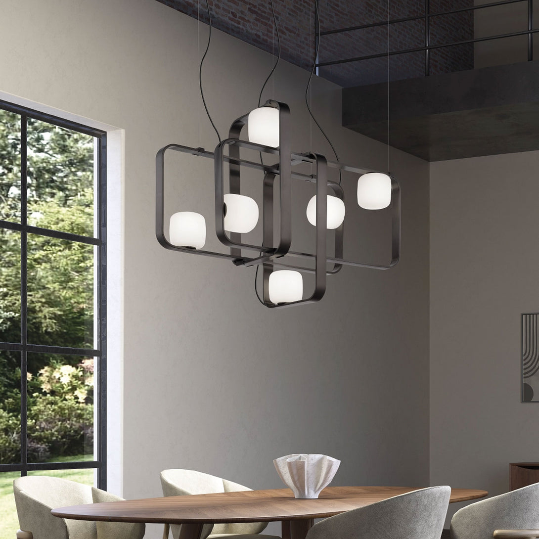 Modern and elegant, these pendant lamps bear the signature of Hangar Design Group . The Groove lamps , in addition to the original design, are characterized by the high versatility of the shape: thanks to an advanced hooking system of the metal structure it is possible to move the metal structures by sliding, thus playing with the geometries and adapting them to the needs every time aesthetic and functional of the moment.