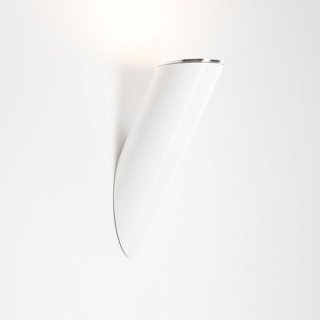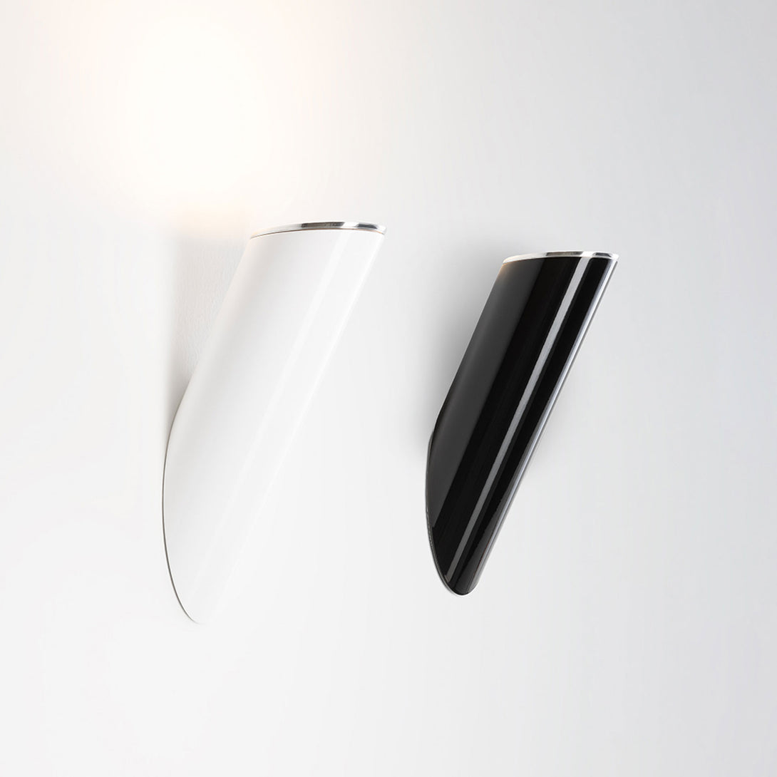 In questa versione Ilio parete, disponibile nelle temperature luce 2700°K e 3000°K, la lampada è inclinata per consentire al corpo cilindrico di sporgere per aprire la luce sullo spazio circostante.