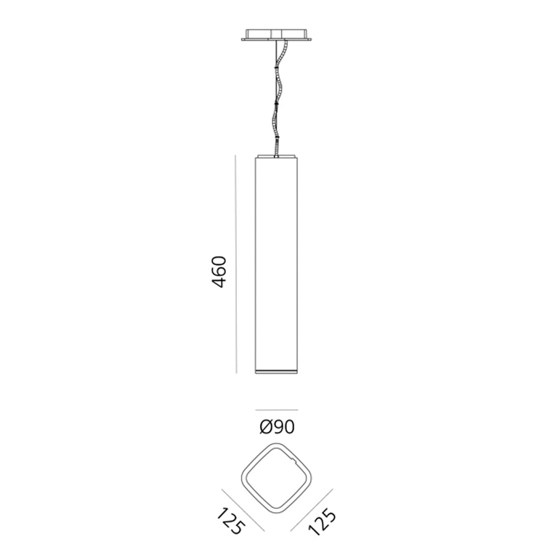 Dimensioni: Ø 9 cm - H. lamp. 46 cm - H. cavo sospensione max 300 cm.