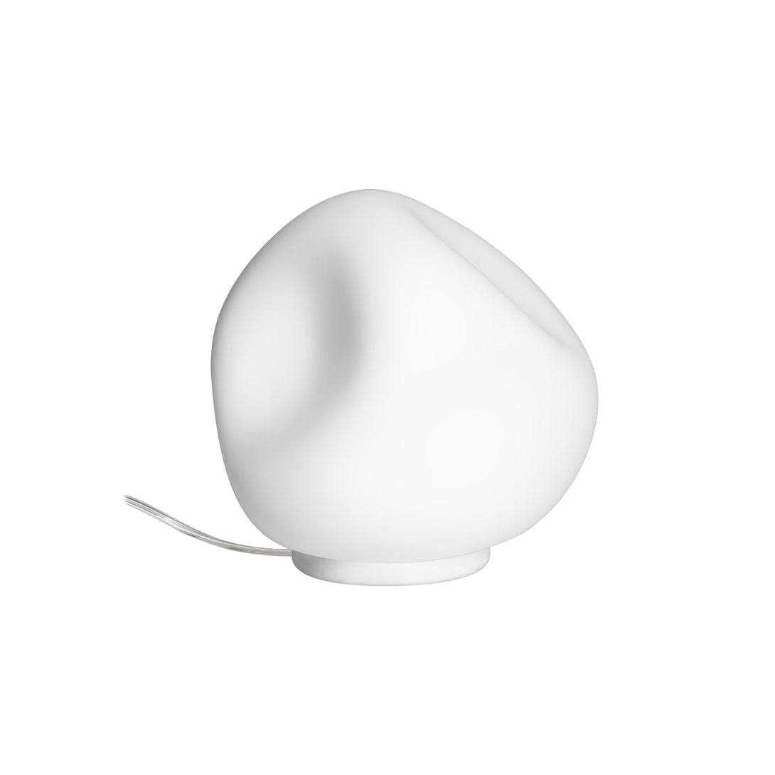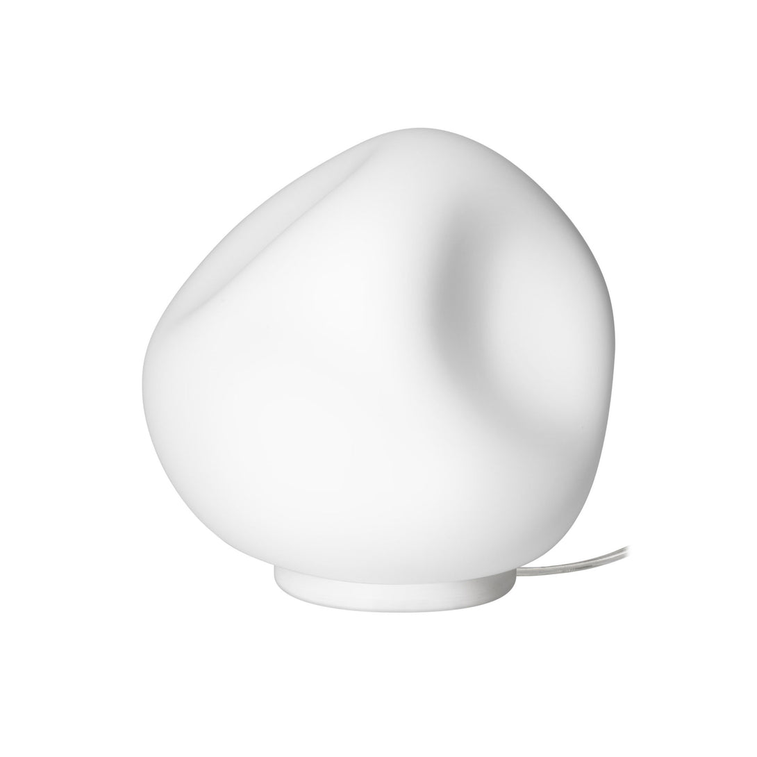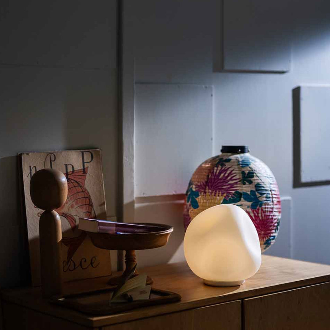 Declinata da Foscarini nei modelli lampada da tavolo, lampada a sospensione e lampada da parete, la lampada Hoba è caratterizzata dal diffusore in vetro opale soffiato con concavità irregolari che, guardandola da tutti i lati, sembra mutare continuamente. Sebbene sia prodotta in serie, l'unicità di ogni singolo pezzo è garantita attraverso un processo originale a stampo aperto, in cui la bravura del maestro vetraio gioca un ruolo fondamentale per ottenere una famiglia di oggetti simili ma sempre variabili, unici ma ripetibili.