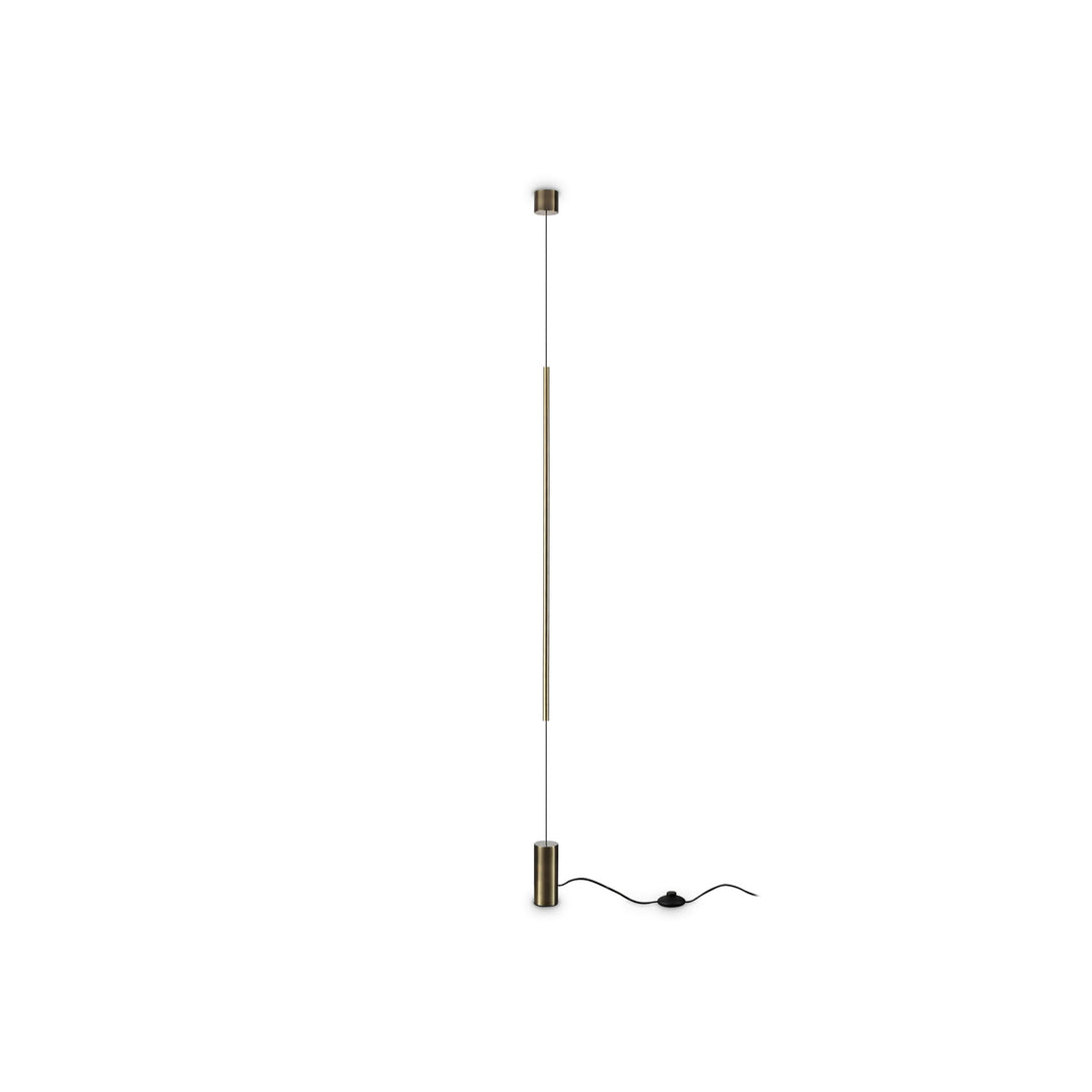 Perfetta per illuminare camere da letto, soggiorni, uffici e showroom, Filo PT è una lampada da terra con struttura in metallo verniciato a polveri o placcato e diffusore in policarbonato opale satinato. Il cavo di alimentazione e quello di sostegno, entrambi in PVC nero, completano un design essenziale e raffinato.