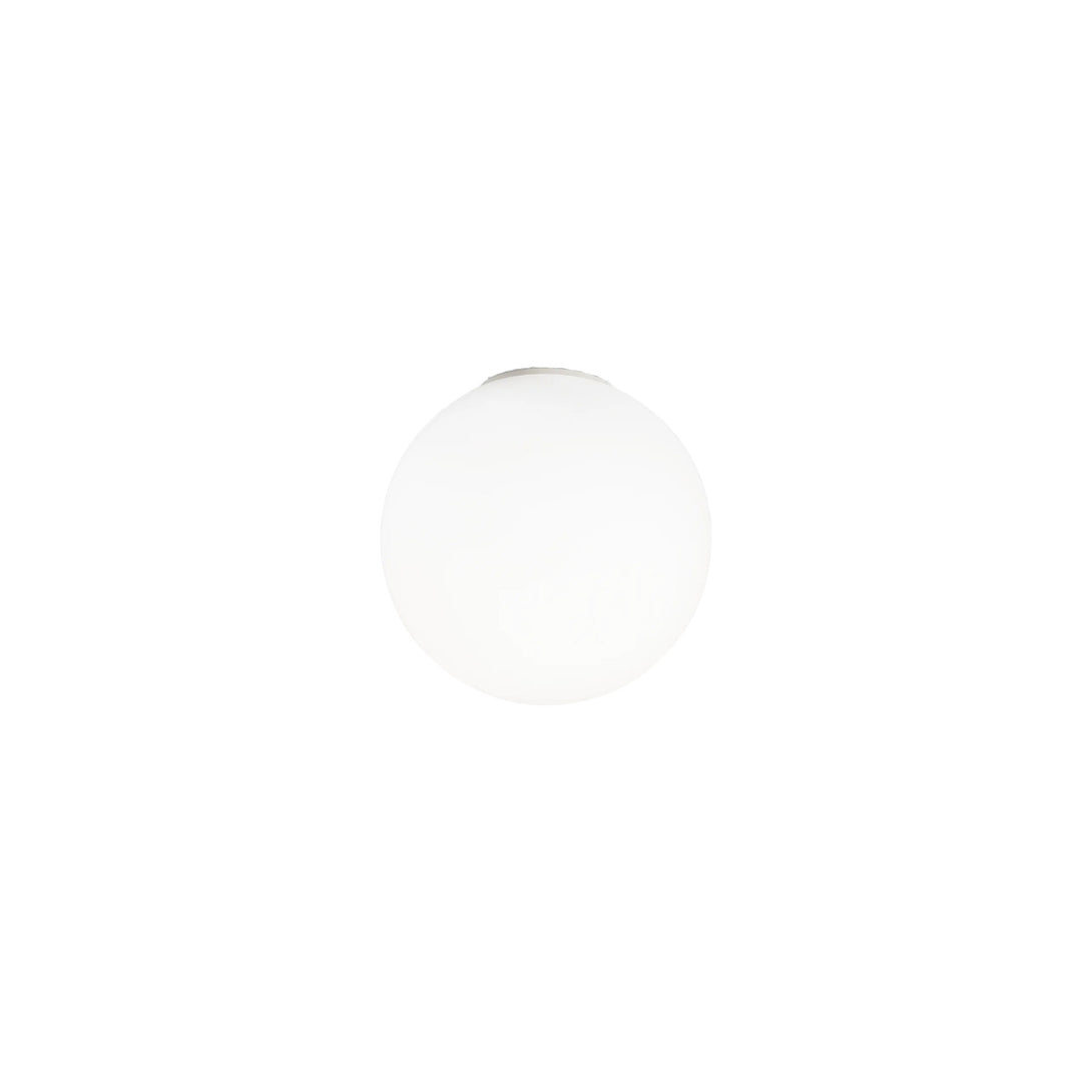 Materiali: base e sistema di fissaggio in metallo e diffusore a sfera in vetro soffiato e acidato.