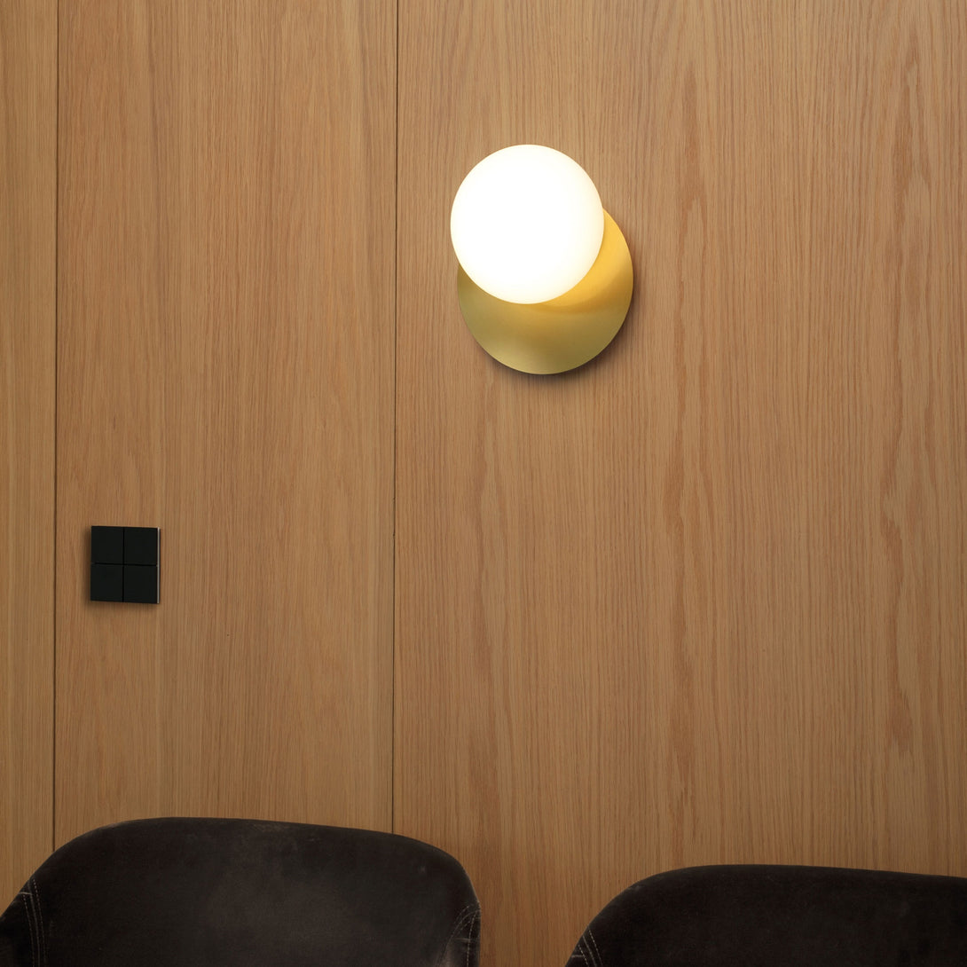 Ninfea AP1 è dotata di un diffusore sferico in vetro incamiciato bianco soffiato e acidato. La base in metallo, verniciato a polveri o placcato, è rifinita in ottone o bianco, il che la rende perfetta per adattarsi sia ad un contesto residenziale che commerciale.