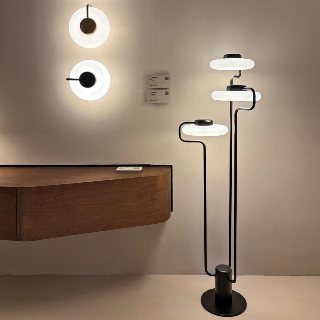 Ogni modello della collezione Tratto è pensato per integrarsi con discrezione ma con forte personalità in diversi contesti abitativi. La lampada da terra reinterpreta con originalità la versione a sospensione, proiettando la luce verso l’alto con slancio scultoreo. La versione lampada da parete, invece, disegna un elegante profilo luminoso che valorizza le superfici con giochi di luce e ombre. Tratto si adatta facilmente sia agli ambienti domestici che a spazi contract, offrendo soluzioni luminose versatili e distintive, capaci di arricchire ogni interno con un tocco di design contemporaneo.