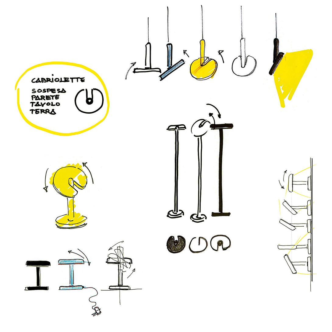 Realizzata in alluminio verniciato con diffusore in metacrilato bianco, la lampada Cabriolette è disponibile nelle finiture lucide bianco, giallo, nero e azzurro. Un oggetto pratico e dinamico, che arricchisce lo spazio con semplicità.