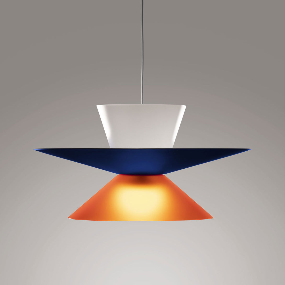 Disponibile nelle versioni indoor e outdoor, la lampada a sospensione Lady Galala è caratterizzata dal corpo centrale capace di sostenere fino a 3 diffusori colorati, consentendo una composizione completamente personalizzata. I tre coni, di forme, diametri, altezze e finiture differenti, permettono di realizzare fino ad otto configurazioni diverse.