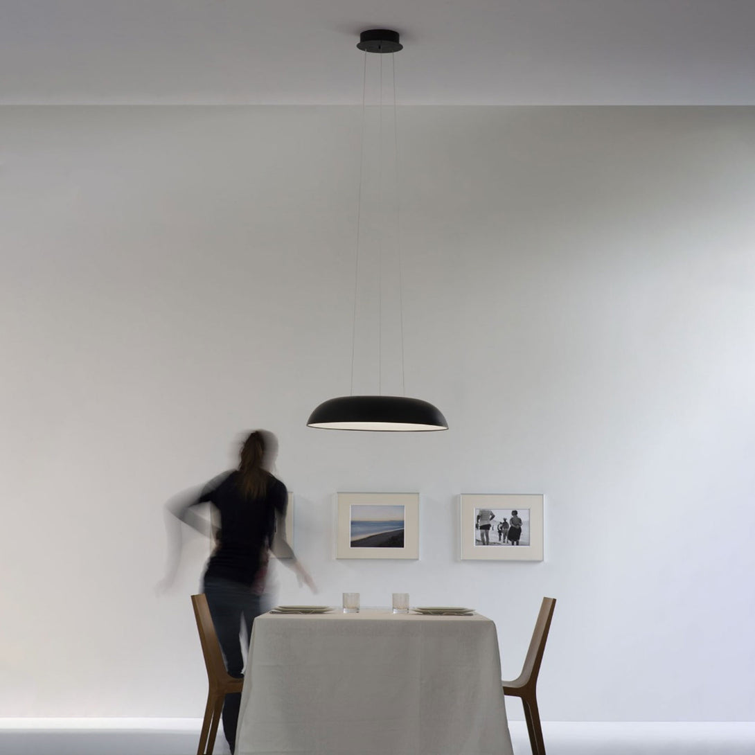 Dimensioni: Ø 85 cm - H. lamp. 17 cm - H. cavo sospensione max 350 cm.