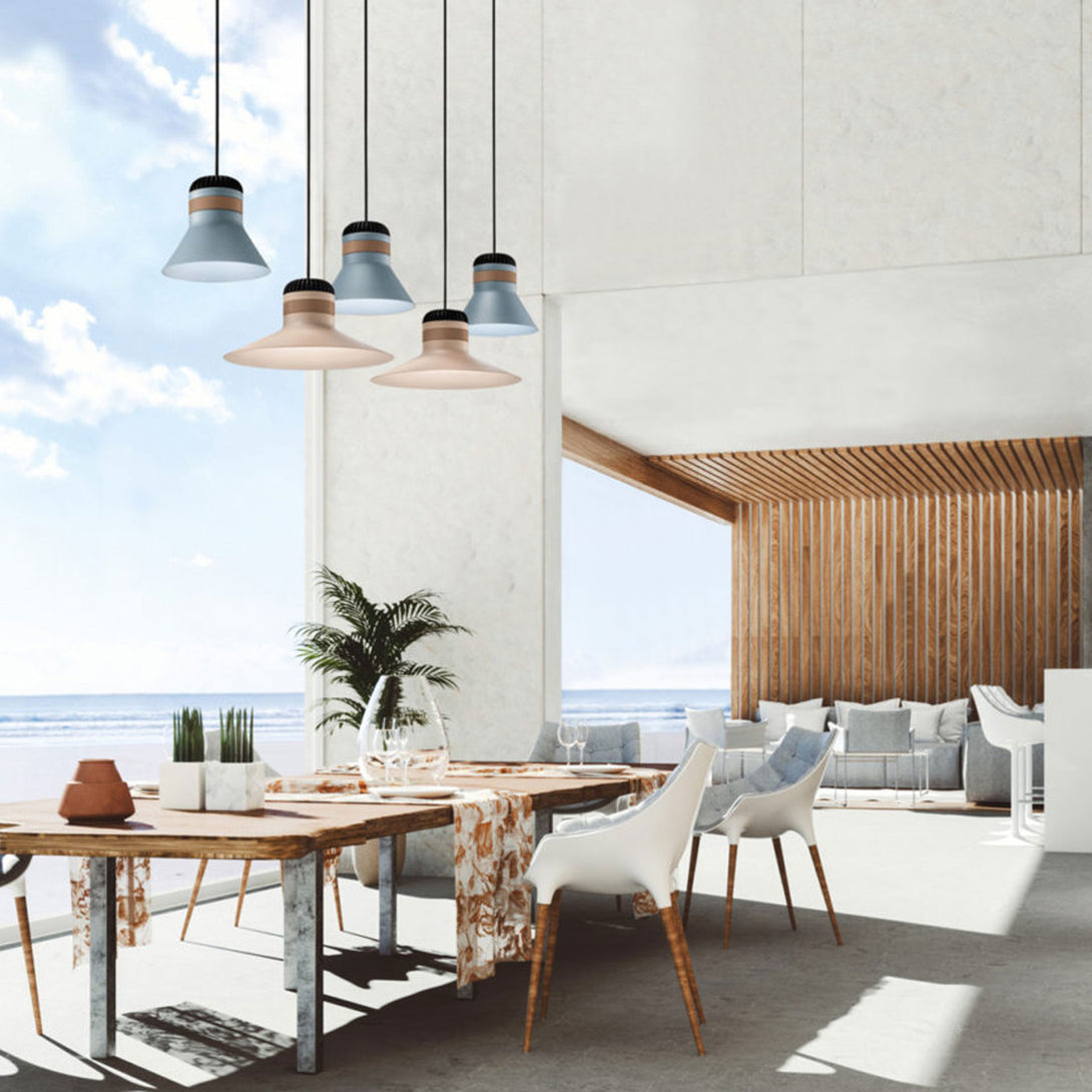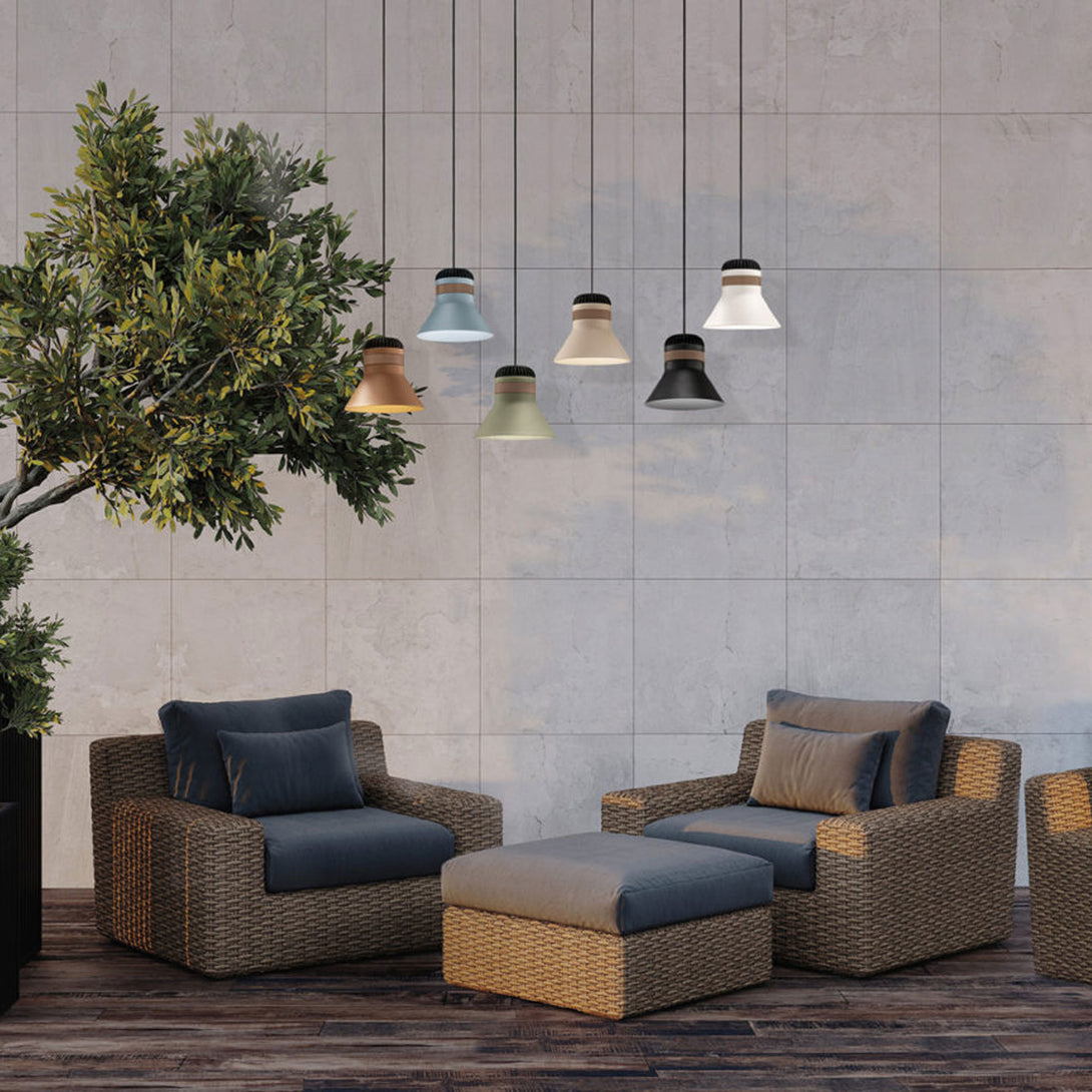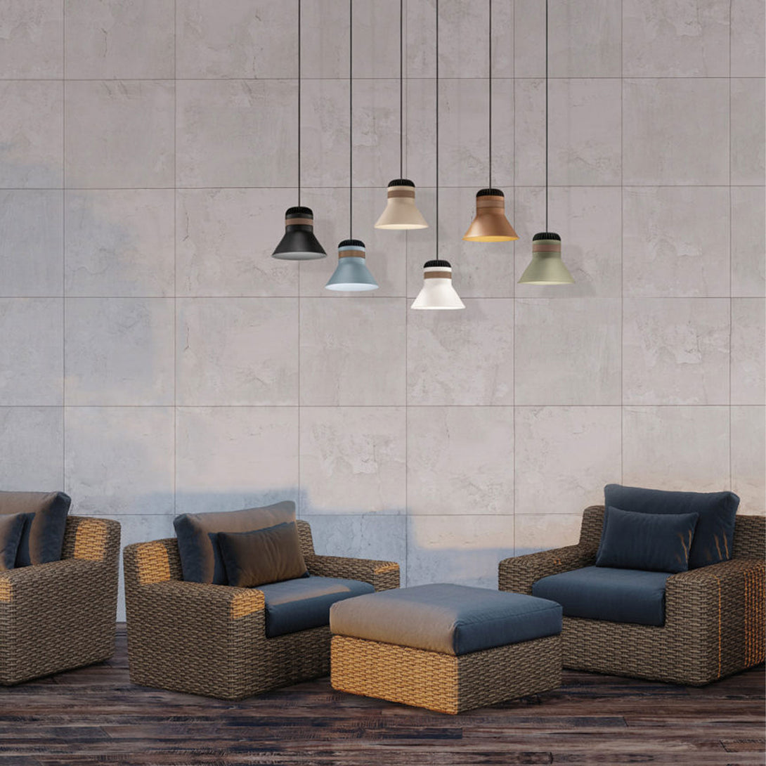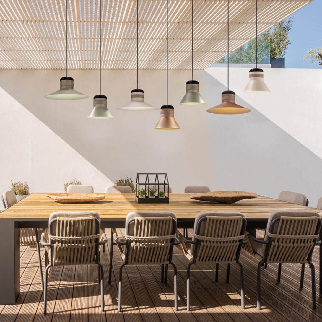 Disponibile nelle versioni da sospensione, parete e tavolo, Cordea Outdoor offre diverse combinazioni di finiture per corpo e cinturino, permettendo di adattarla a ogni contesto, creando atmosfere calde e accoglienti in giardini, terrazze o spazi esterni dal carattere contemporaneo.