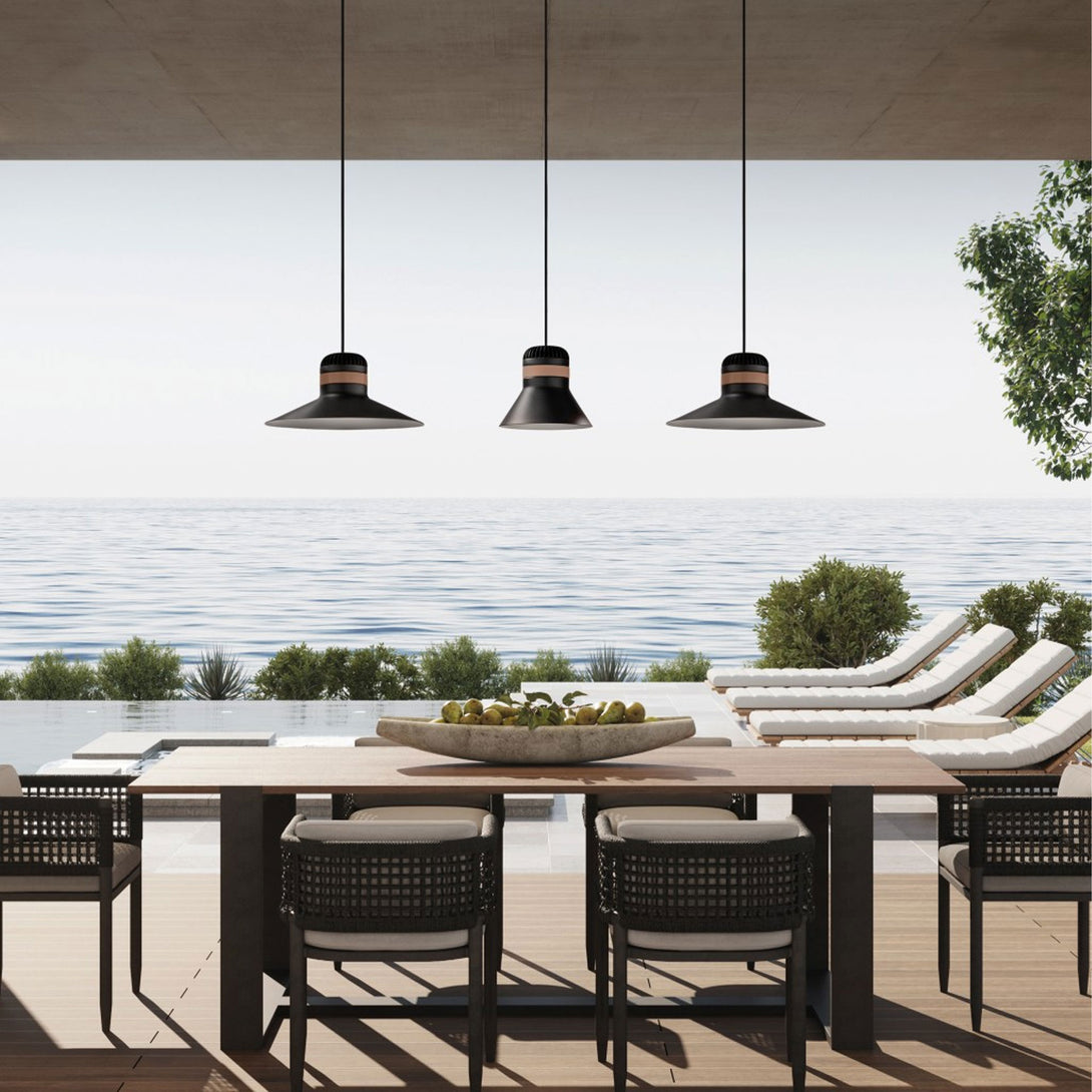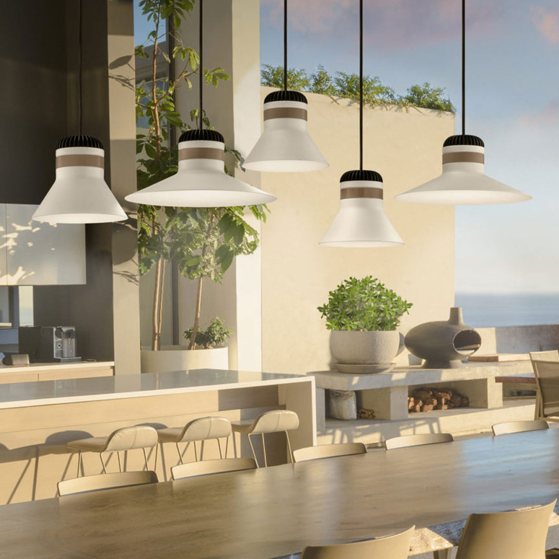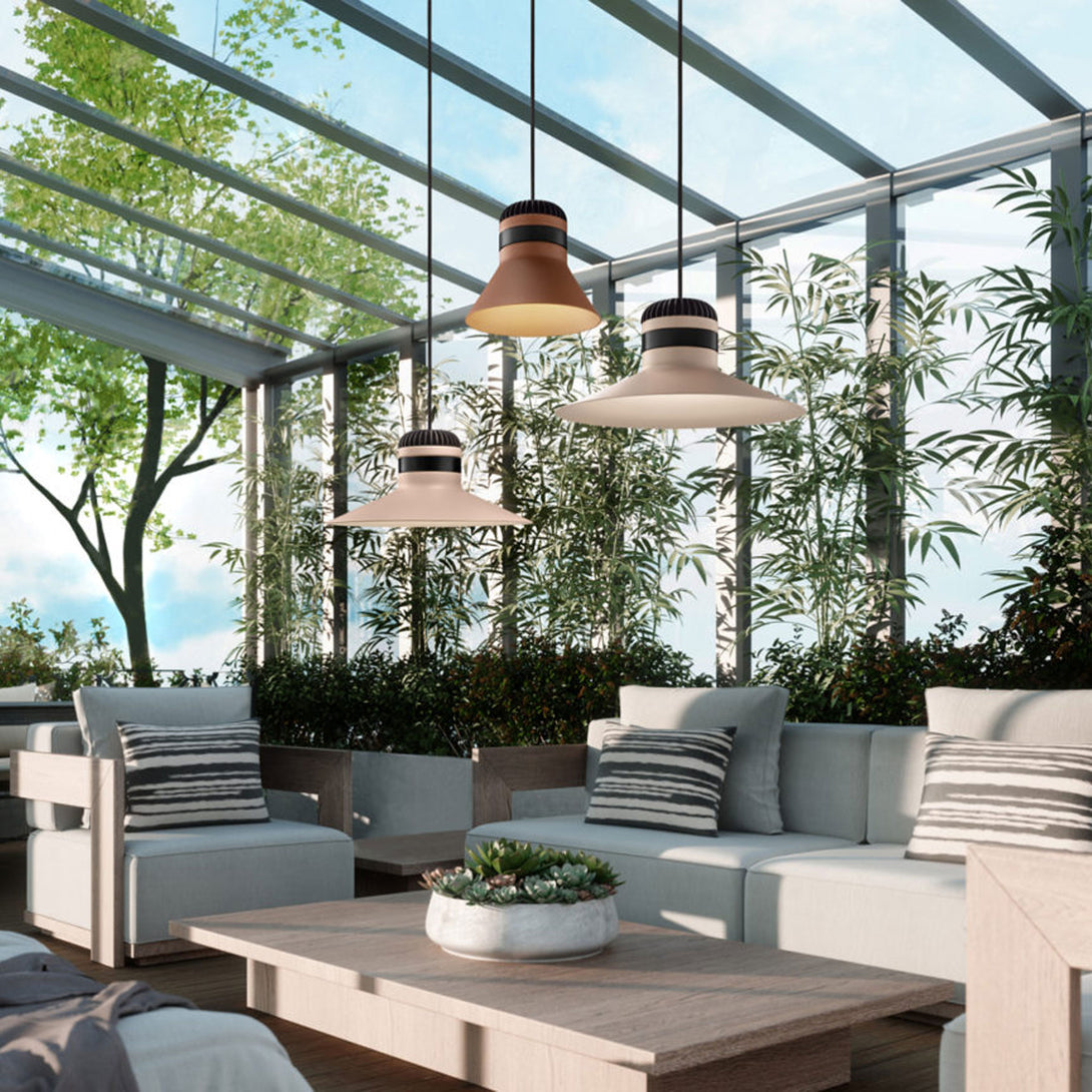 Nella versione outdoor, le lampade Cordea sono progettate per garantire resistenza e stile anche negli spazi esterni. La struttura in metallo verniciato è arricchita da un cinturino in gomma che ne definisce la linea, mentre il diffusore, protetto da grado di isolamento IP54, assicura un’illuminazione a LED affidabile e uniforme.