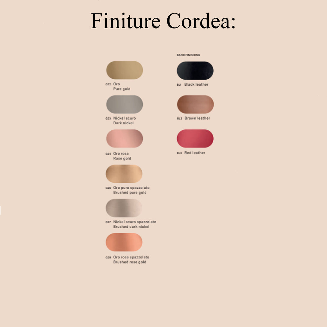 Finitura cinturino: nero o marrone o rosso.