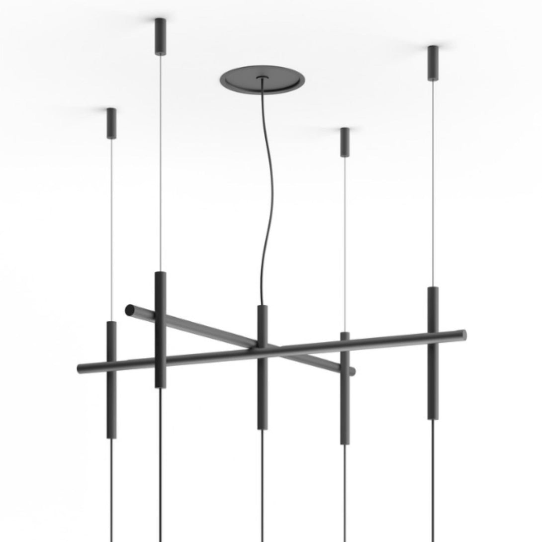 Realizzata nella finitura opaca grafite, Algorithm di Vibia si adatta perfettamente allo spazio circostante grazie all'infinita possibilità di composizione dei suoi elementi.