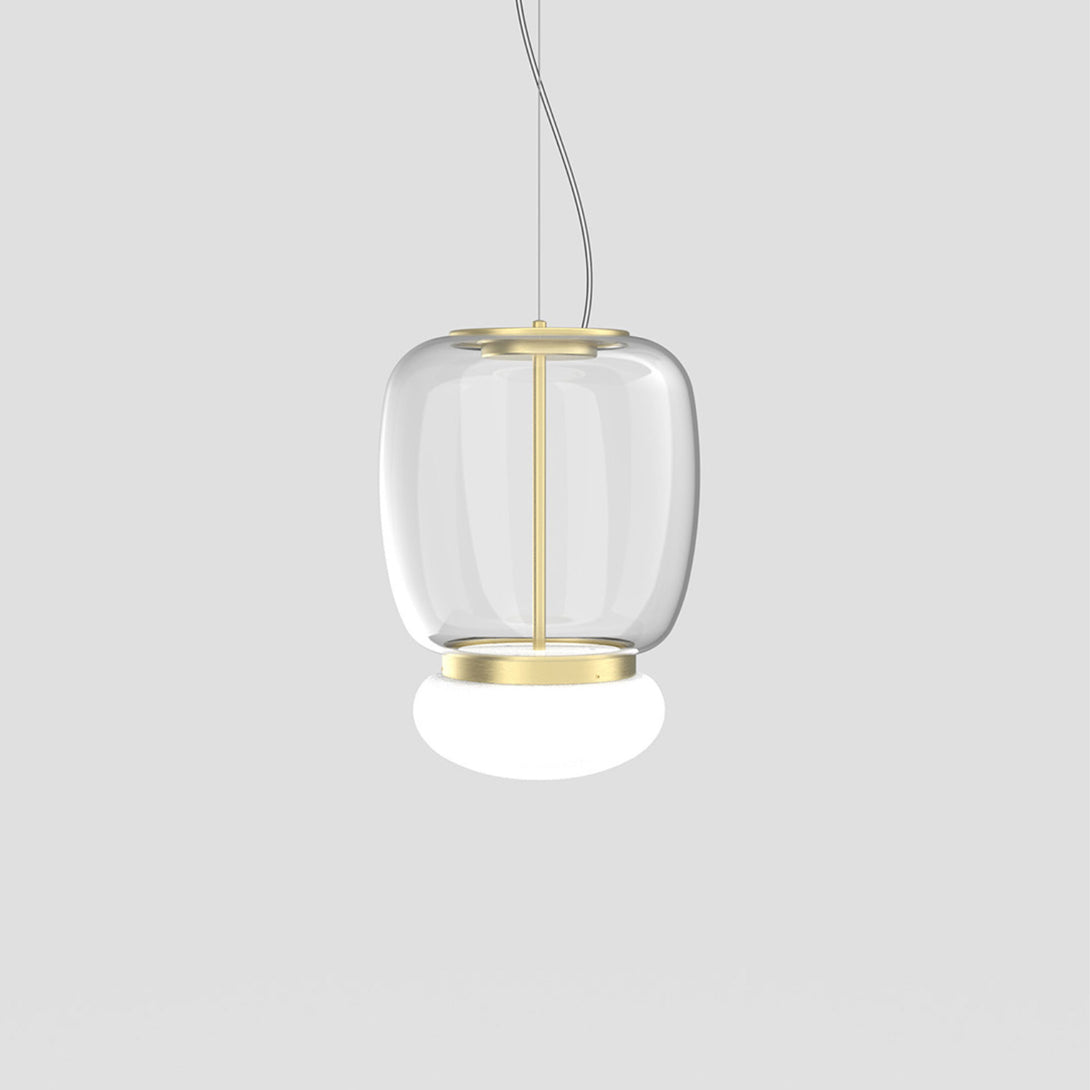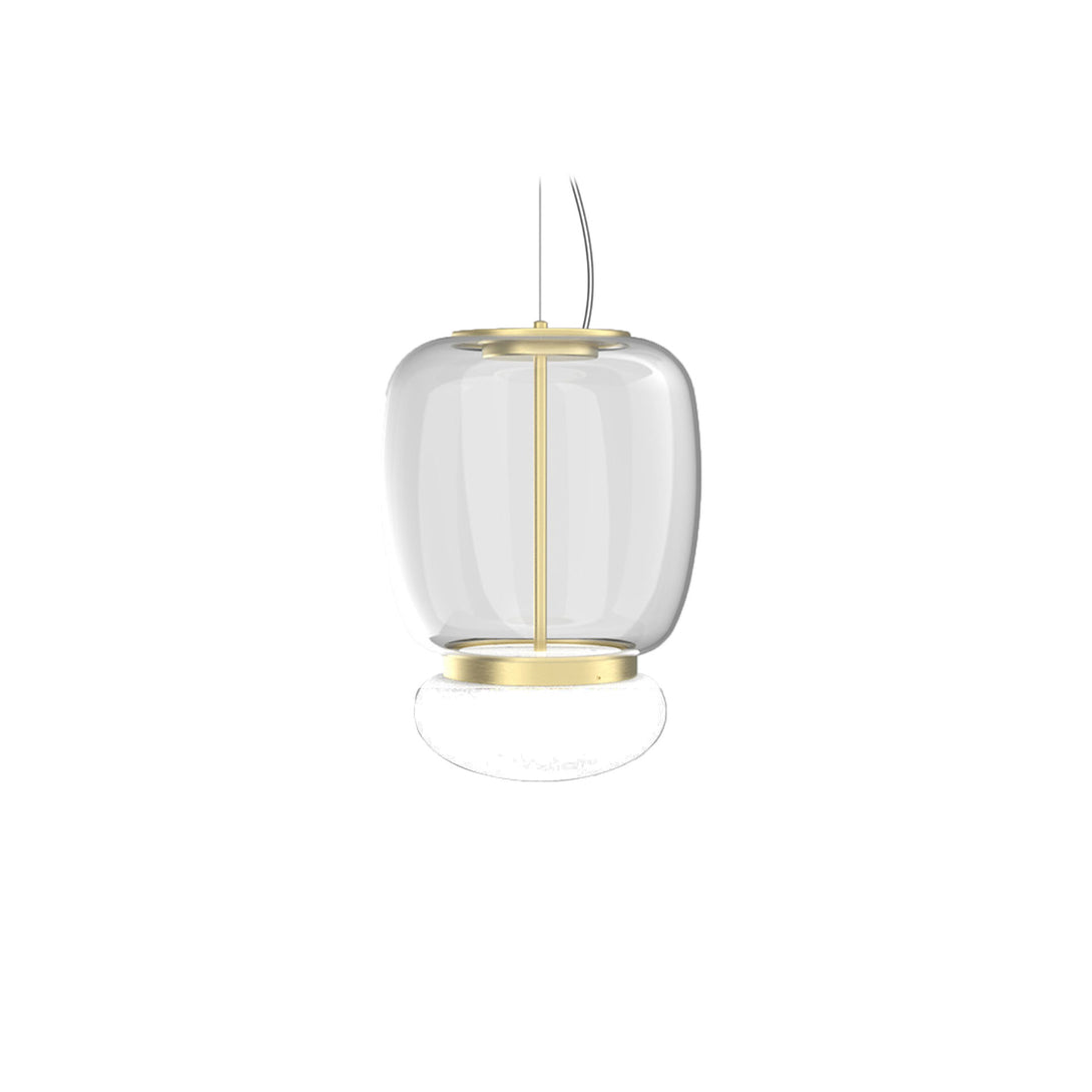 Faro è una famiglia di lampade disegnata da Oriano Favaretti per Vistosi. In questa versione Faro Sospensione Grande Cristallo-Ottone.